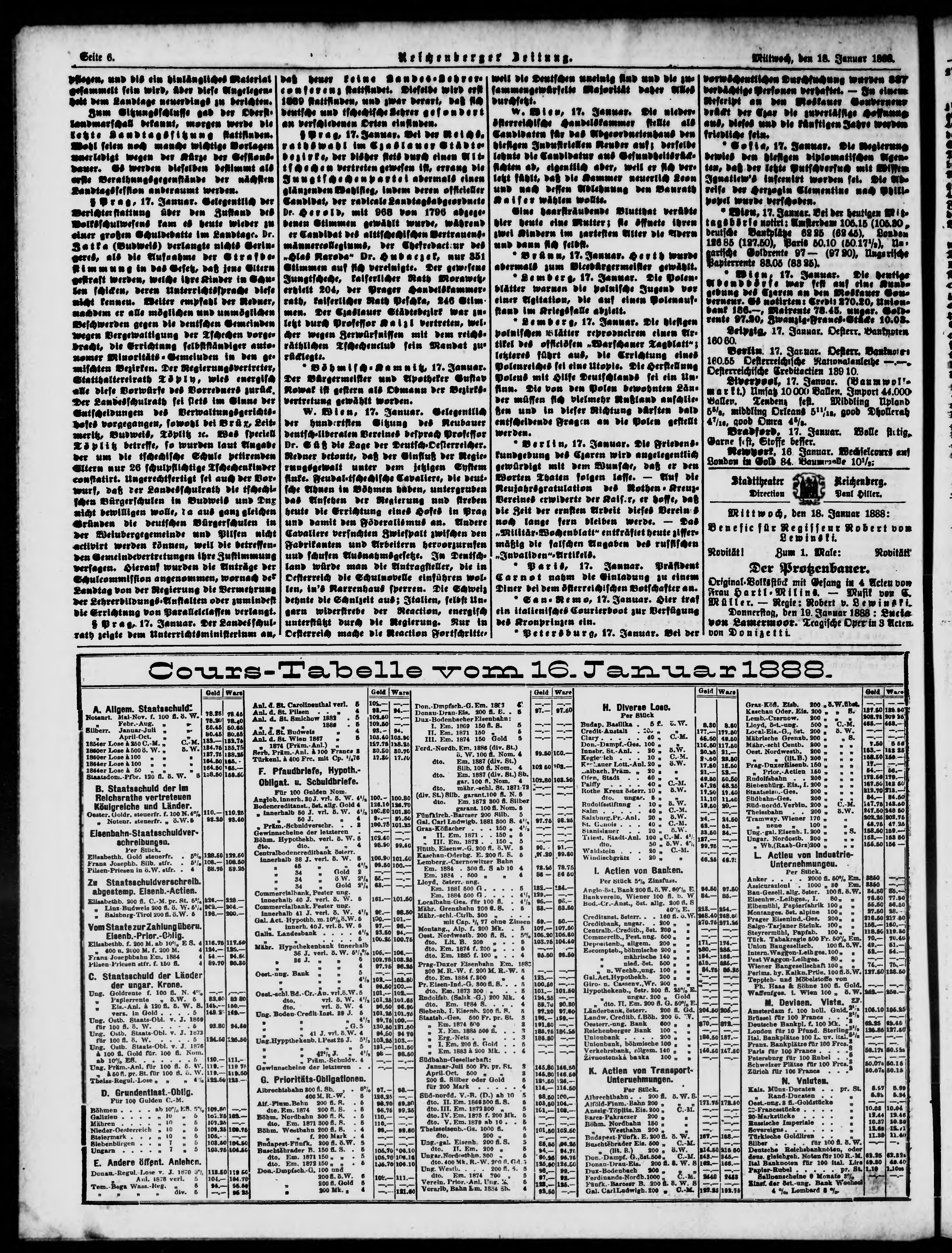 * Datum vydání výtisku: 18.1.1888 Číslo výtisku: 14