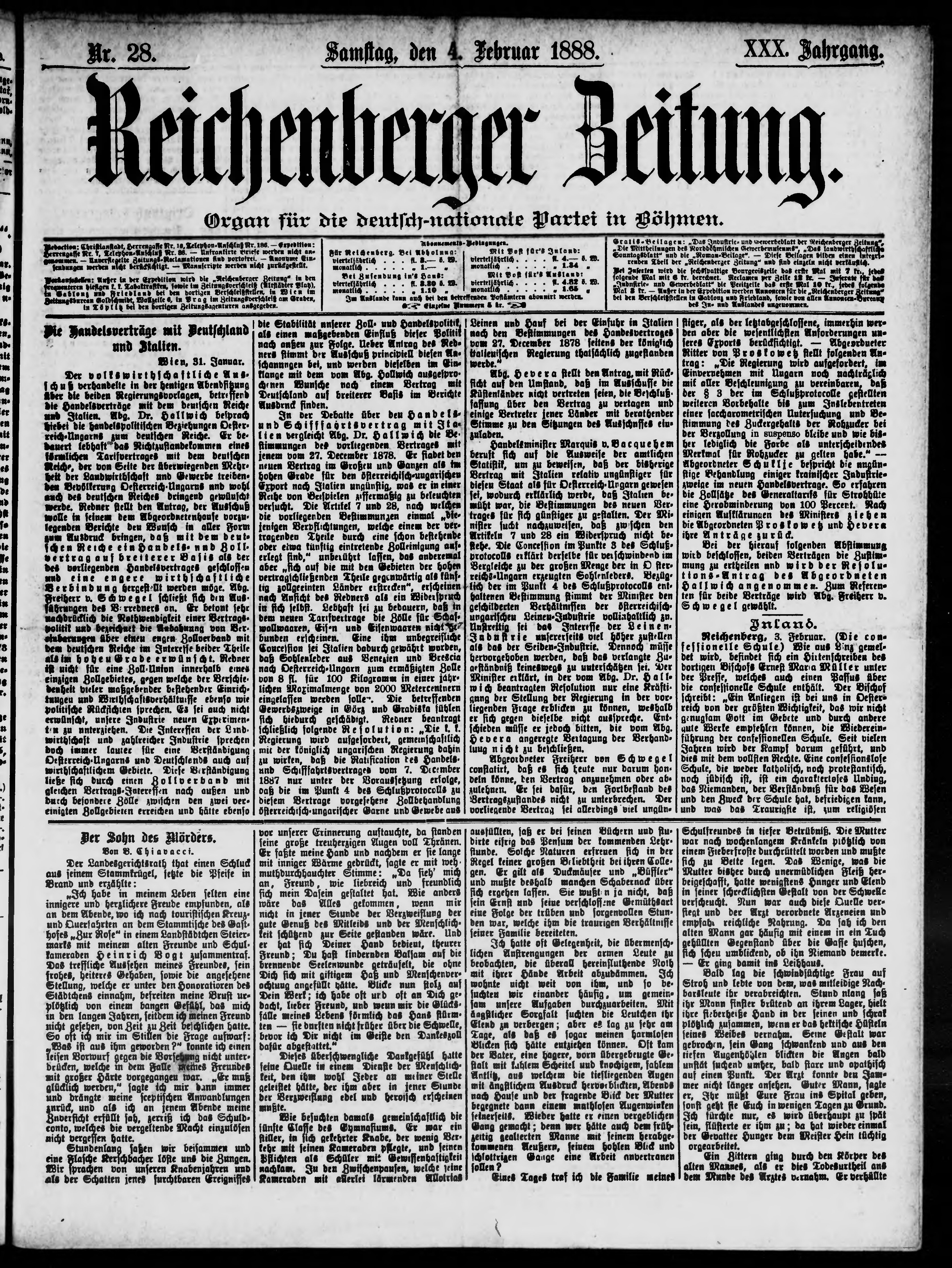 * Datum vydání výtisku: 4.2.1888 Číslo výtisku: 28