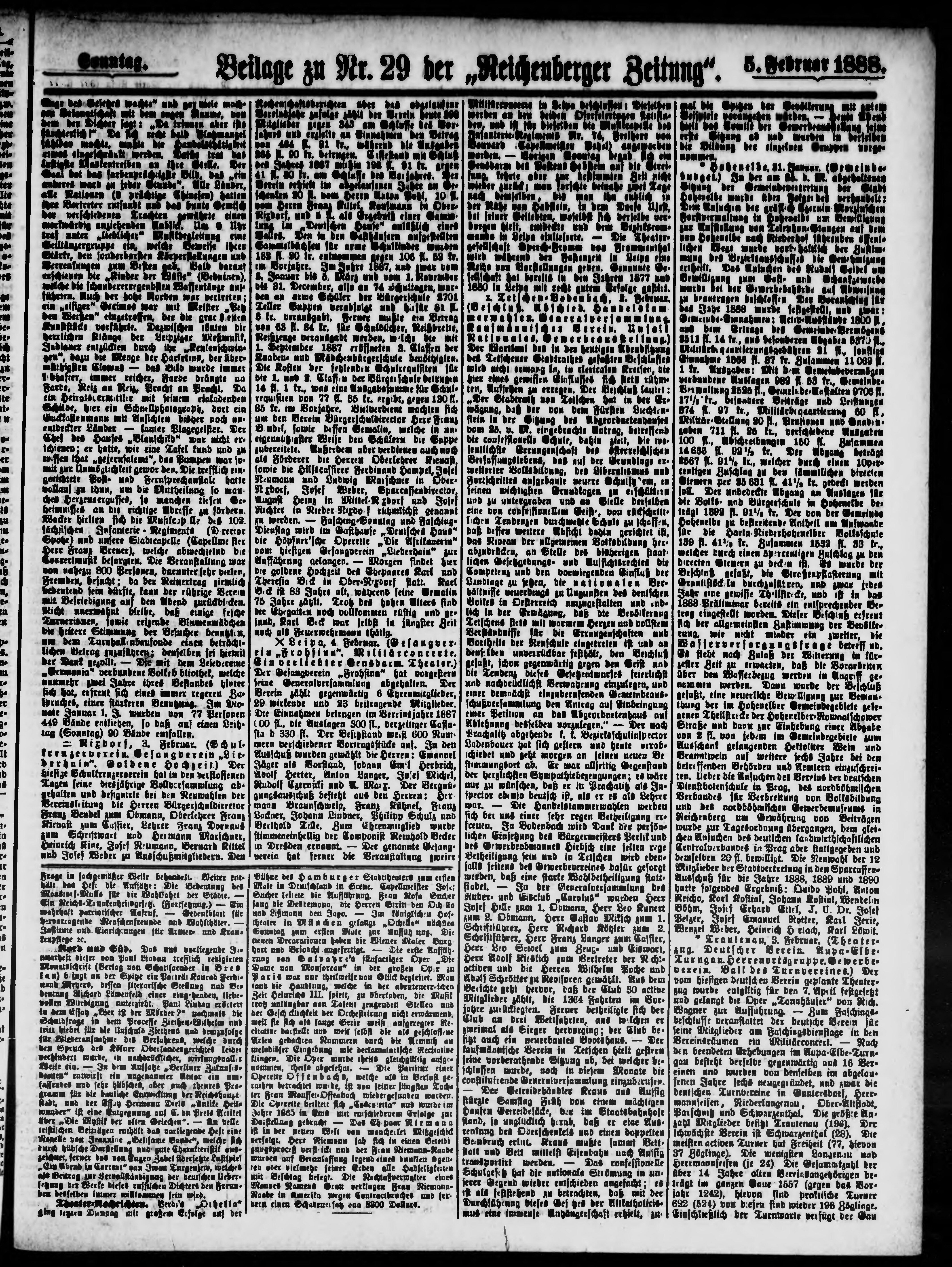 * Datum vydání výtisku: 5.2.1888 Číslo výtisku: 29