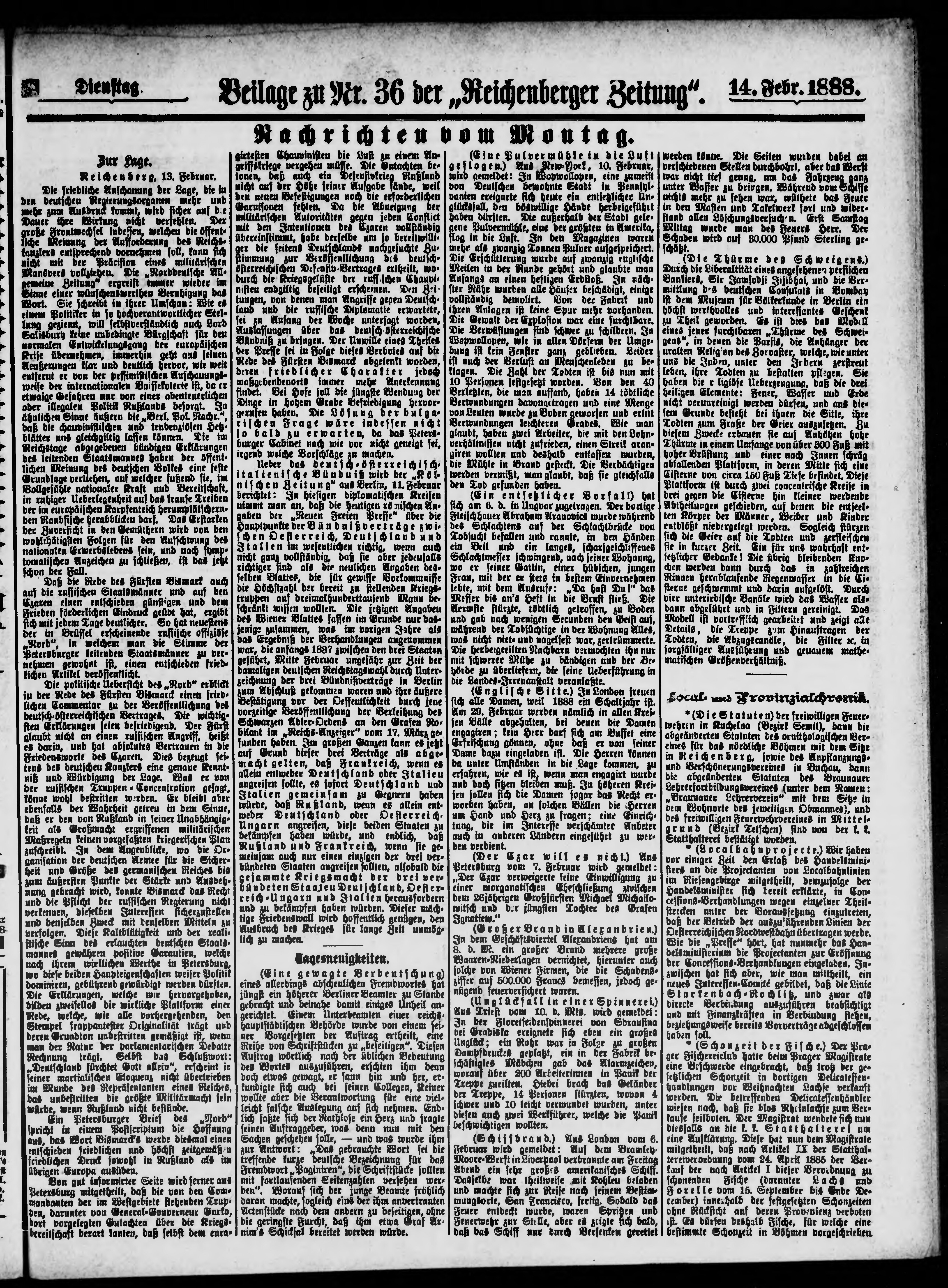 * Datum vydání výtisku: 14.2.1888 Číslo výtisku: 36