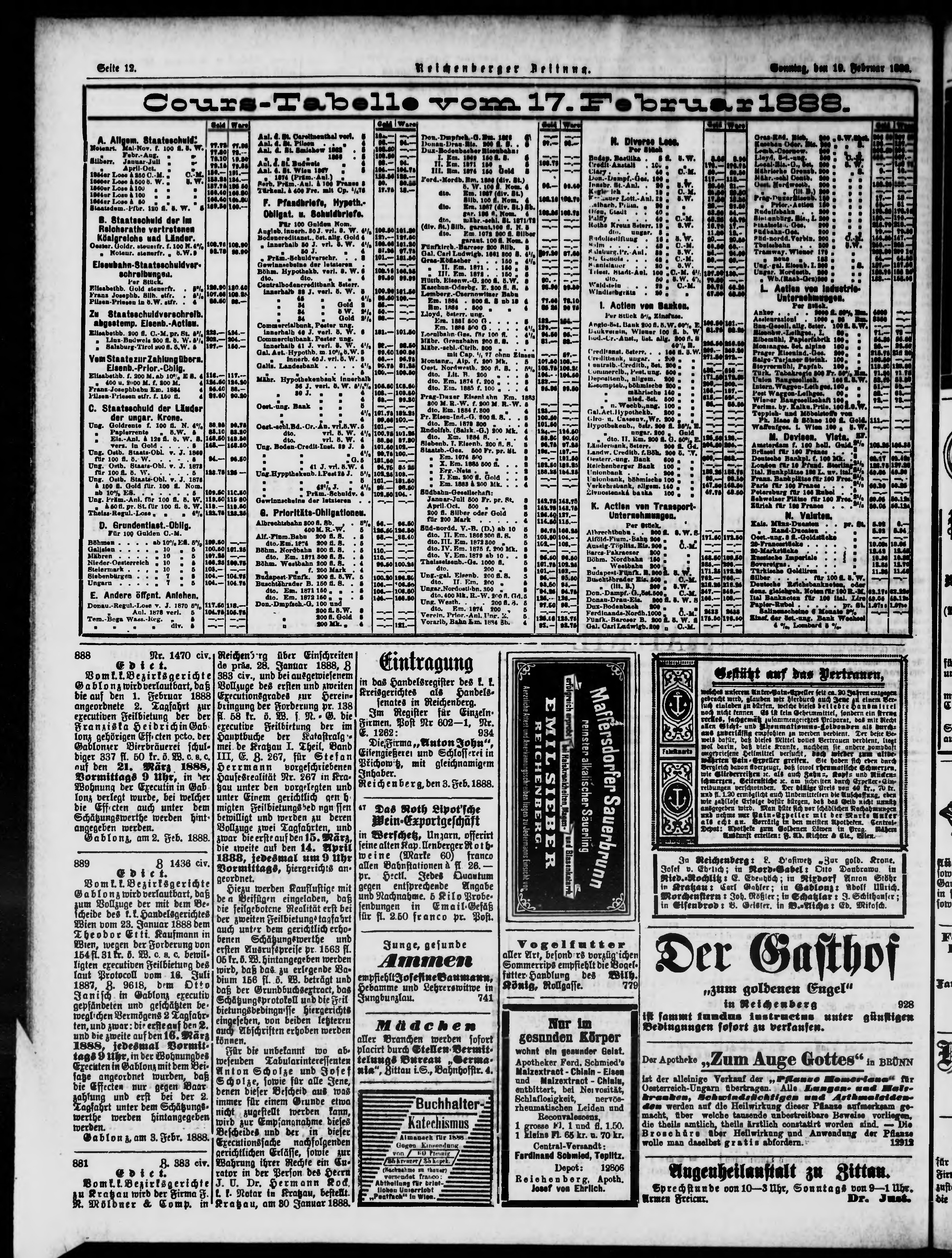 * Datum vydání výtisku: 19.2.1888 Číslo výtisku: 41