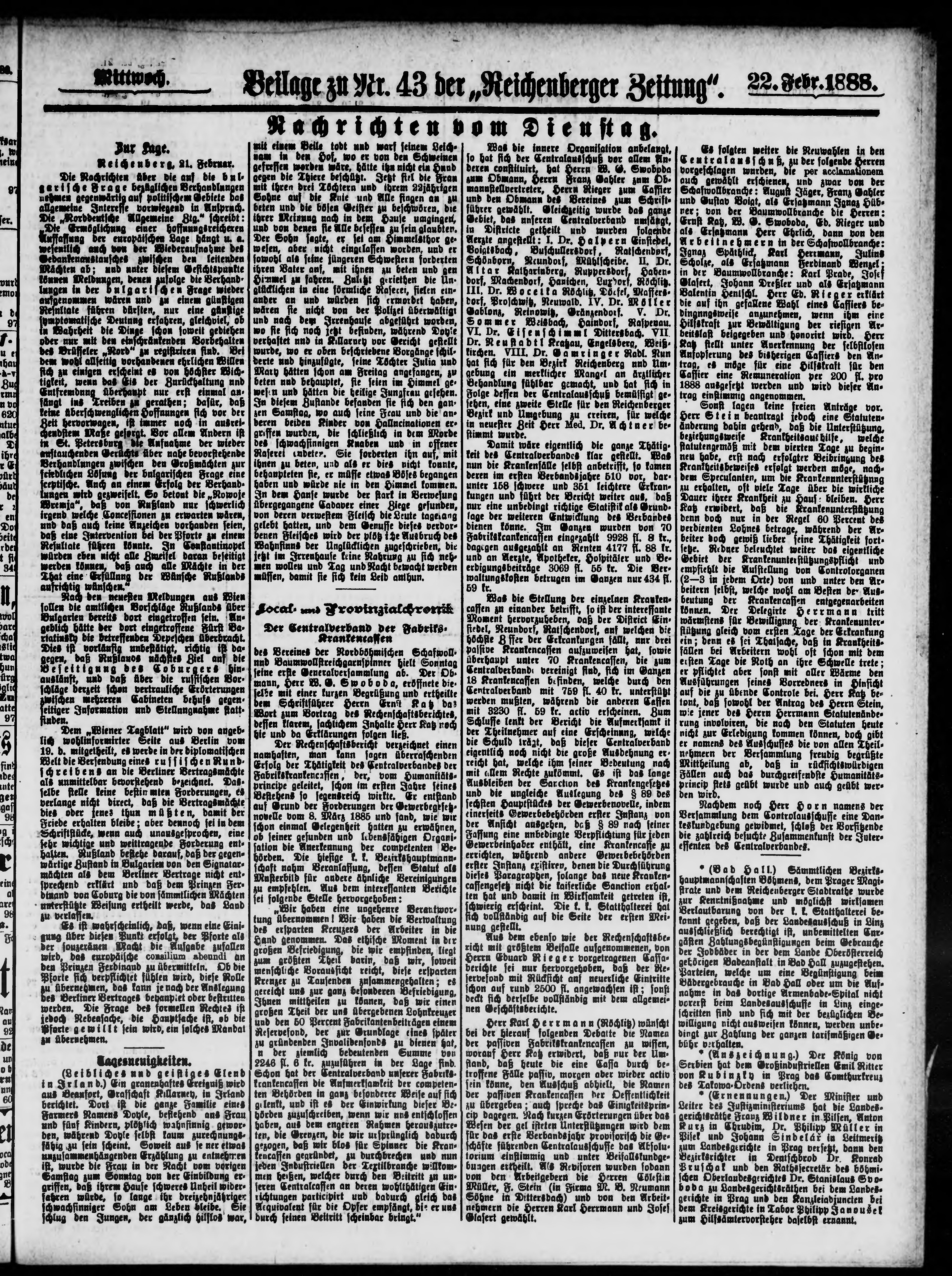 * Datum vydání výtisku: 22.2.1888 Číslo výtisku: 43