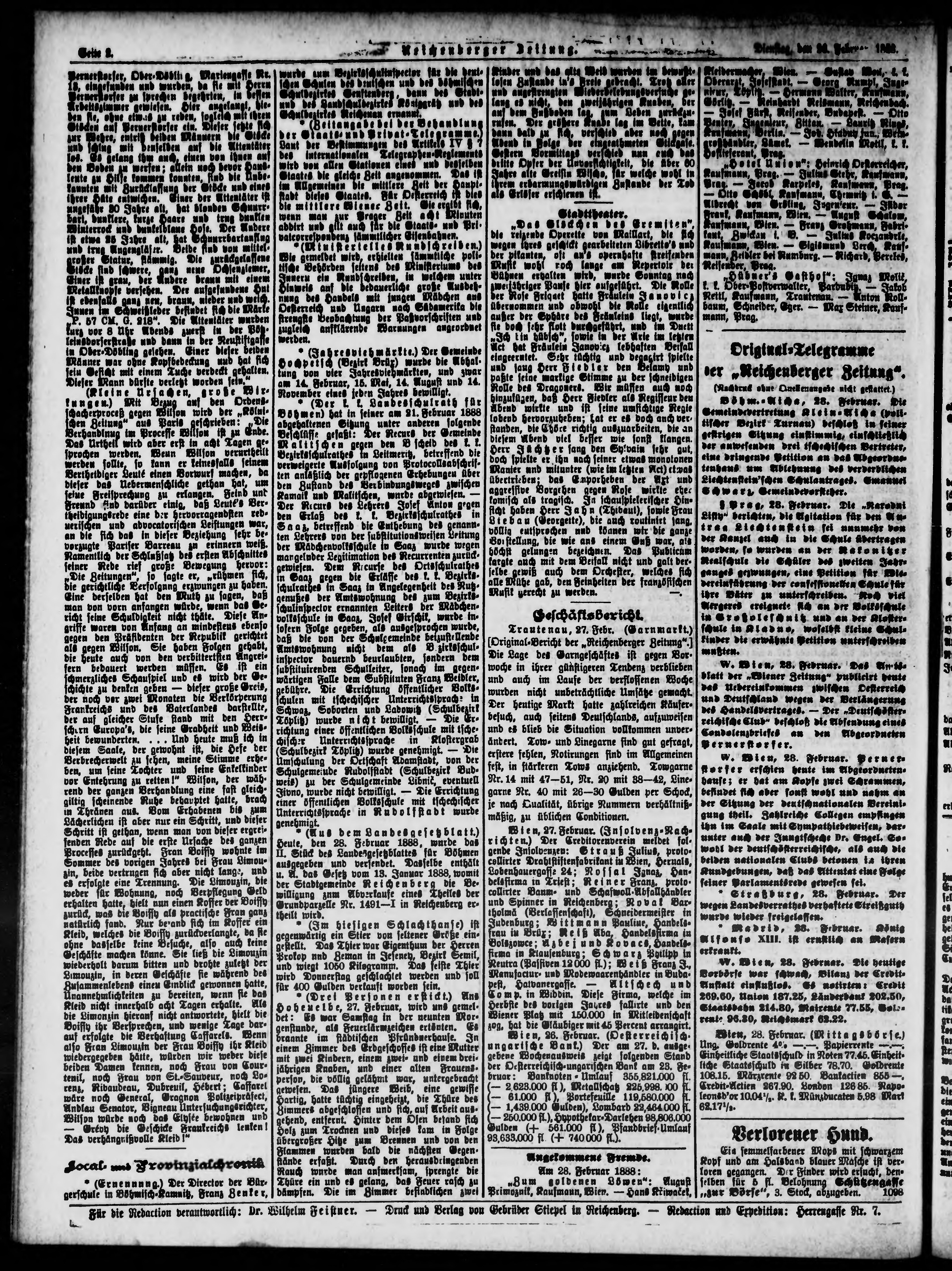 * Datum vydání výtisku: 29.2.1888 Číslo výtisku: 49
