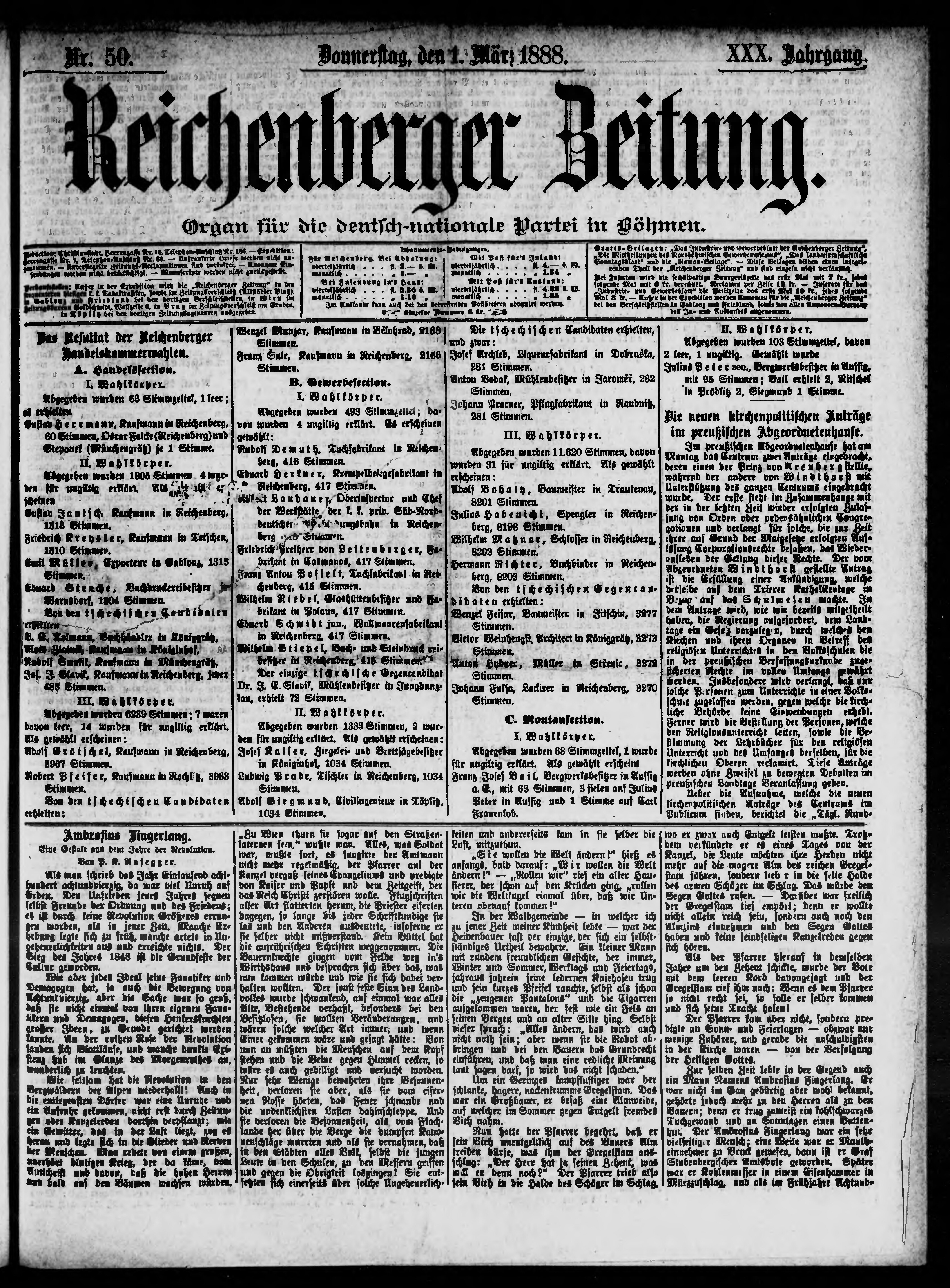 * Datum vydání výtisku: 1.3.1888 Číslo výtisku: 50