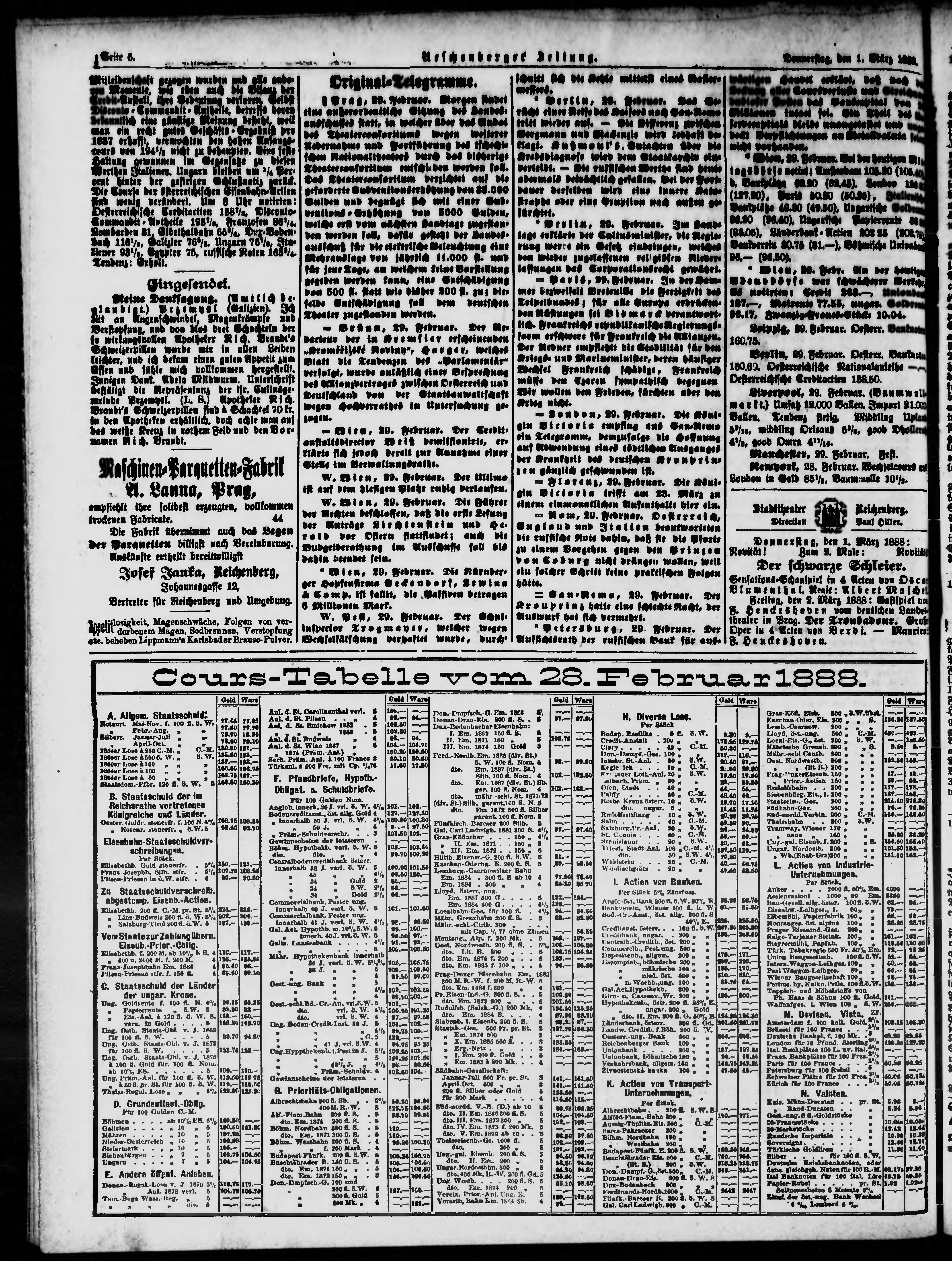 * Datum vydání výtisku: 1.3.1888 Číslo výtisku: 50
