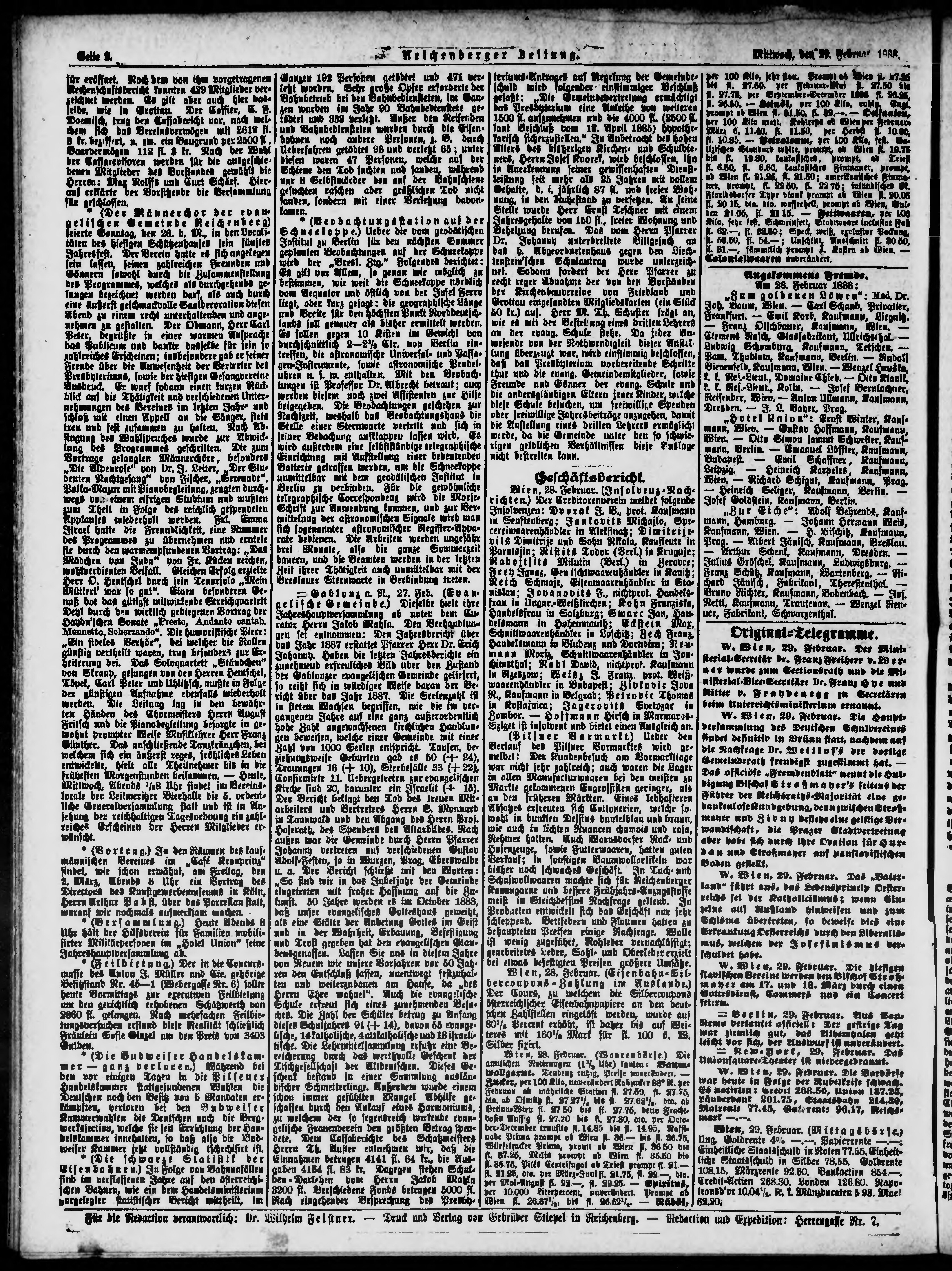 * Datum vydání výtisku: 1.3.1888 Číslo výtisku: 50