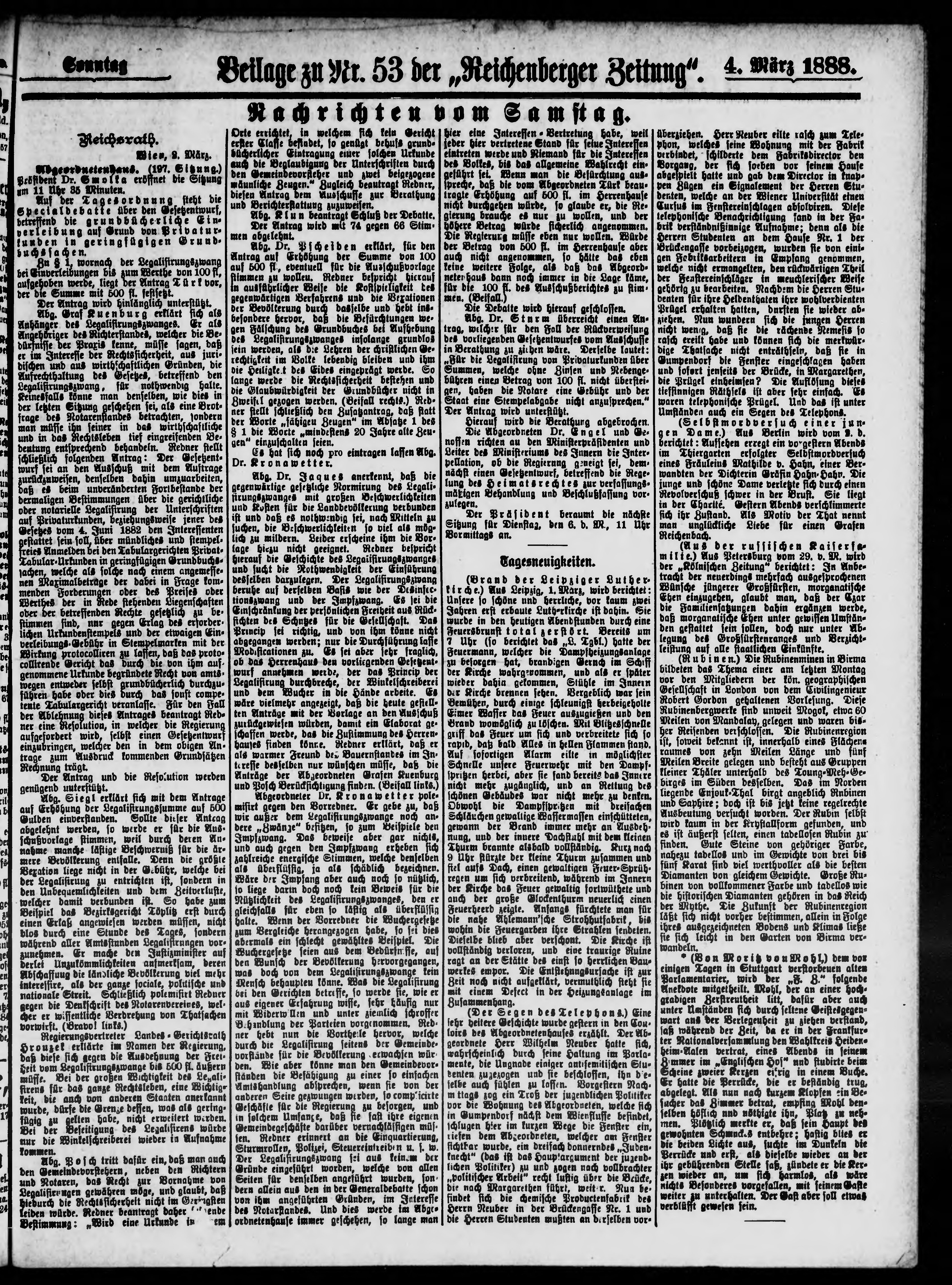 * Datum vydání výtisku: 4.3.1888 Číslo výtisku: 53