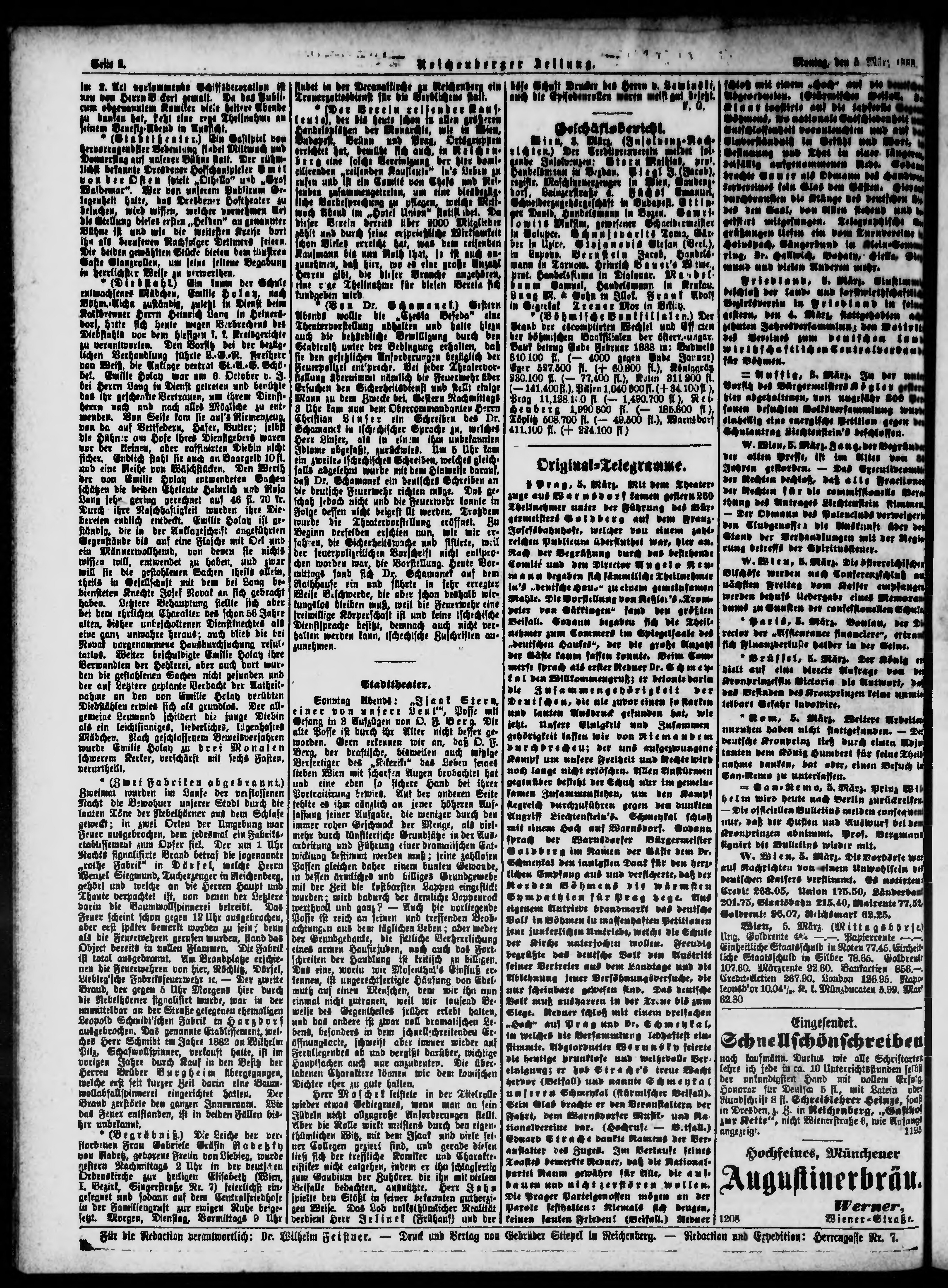 * Datum vydání výtisku: 6.3.1888 Číslo výtisku: 54