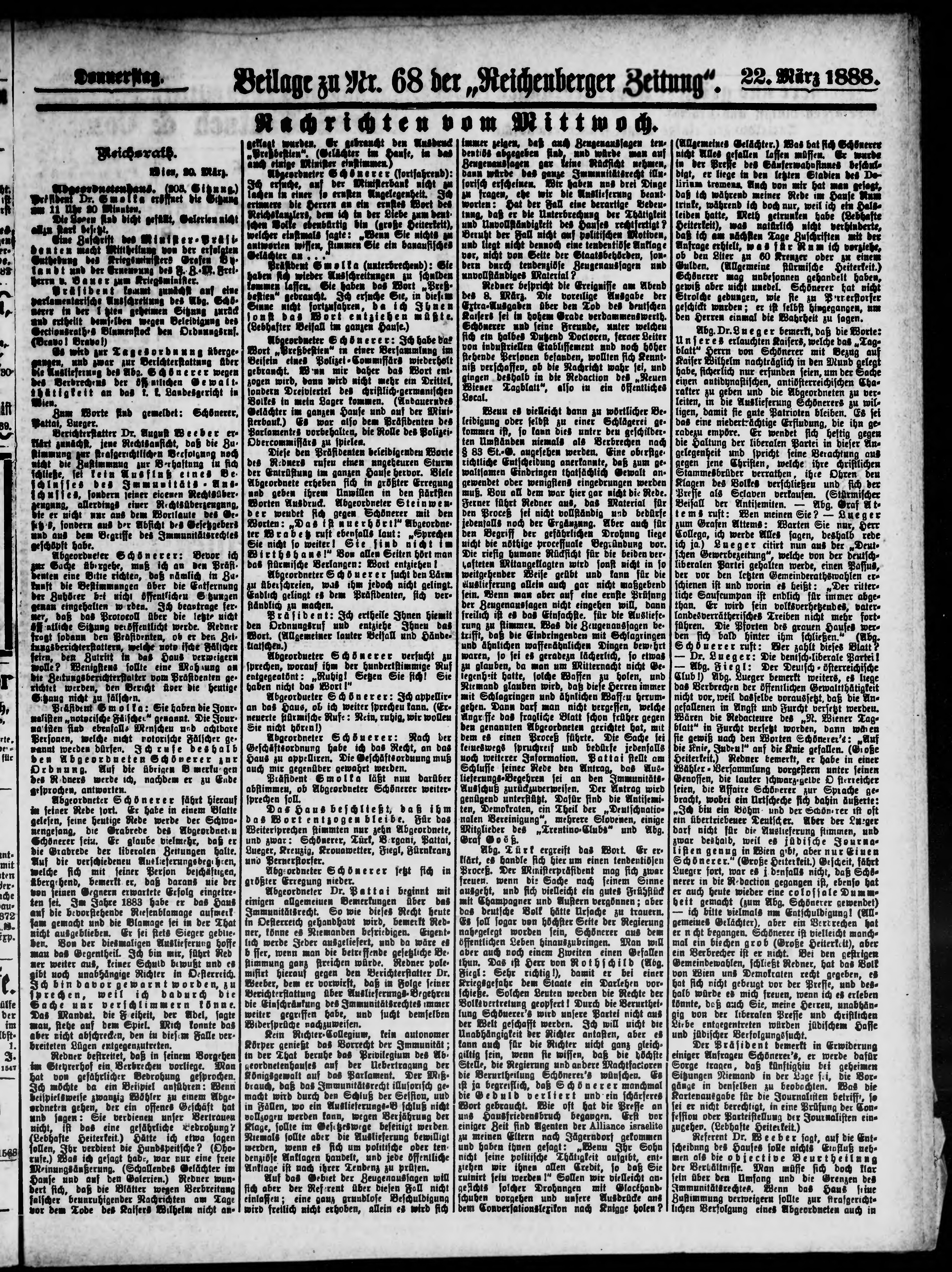 * Datum vydání výtisku: 22.3.1888 Číslo výtisku: 68