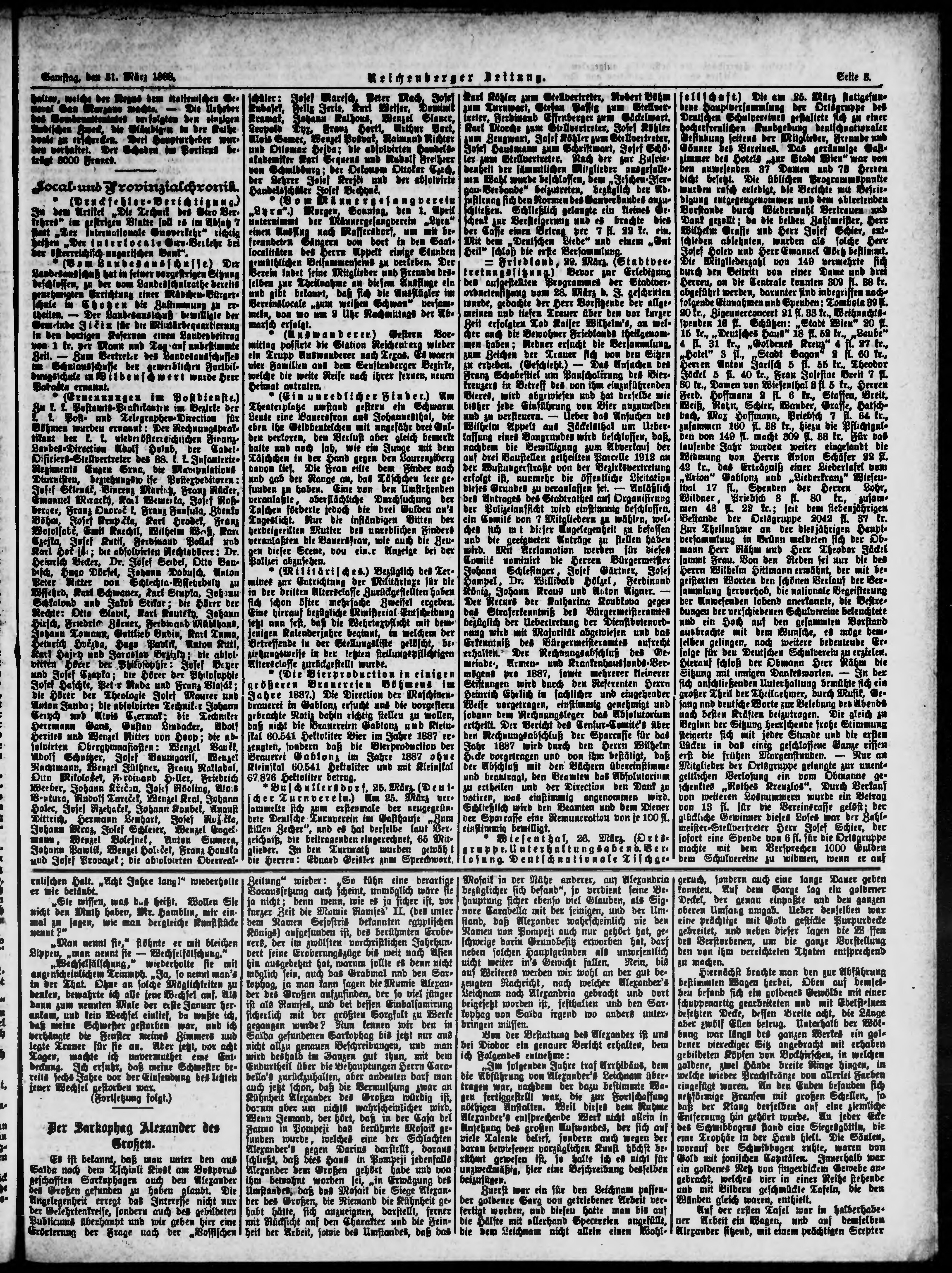 * Datum vydání výtisku: 31.3.1888 Číslo výtisku: 76