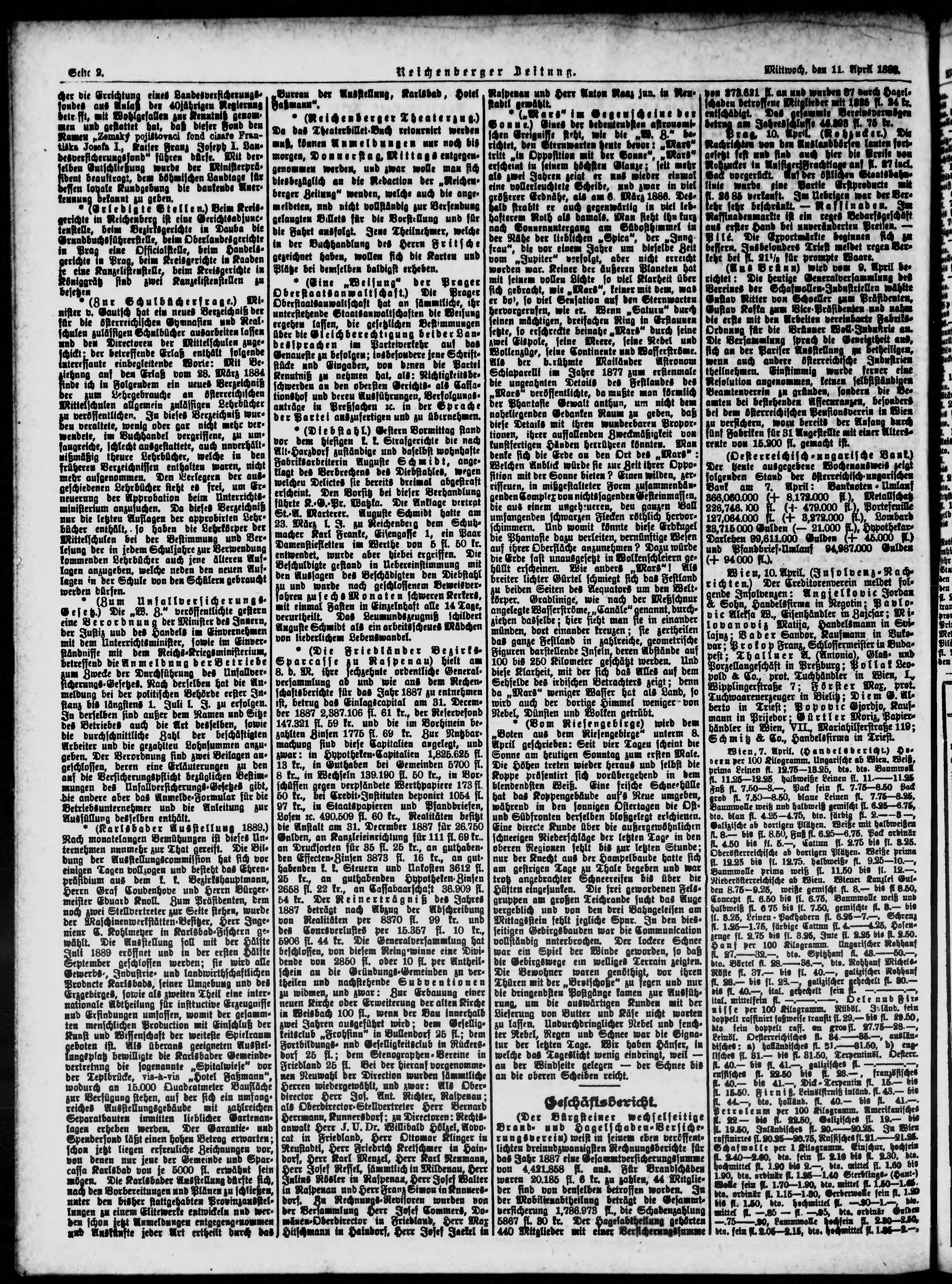 * Datum vydání výtisku: 12.4.1888 Číslo výtisku: 85