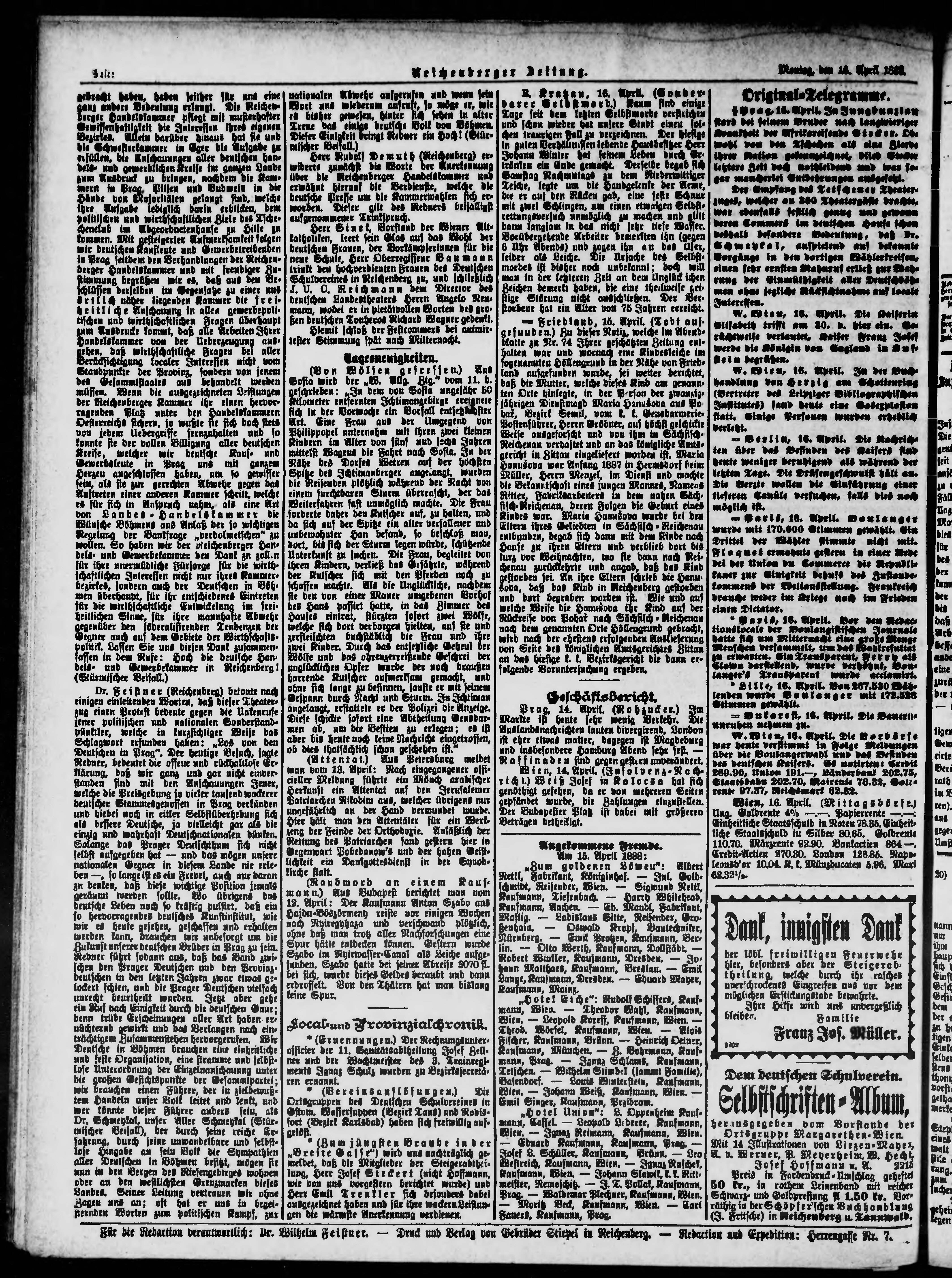 * Datum vydání výtisku: 17.4.1888 Číslo výtisku: 89