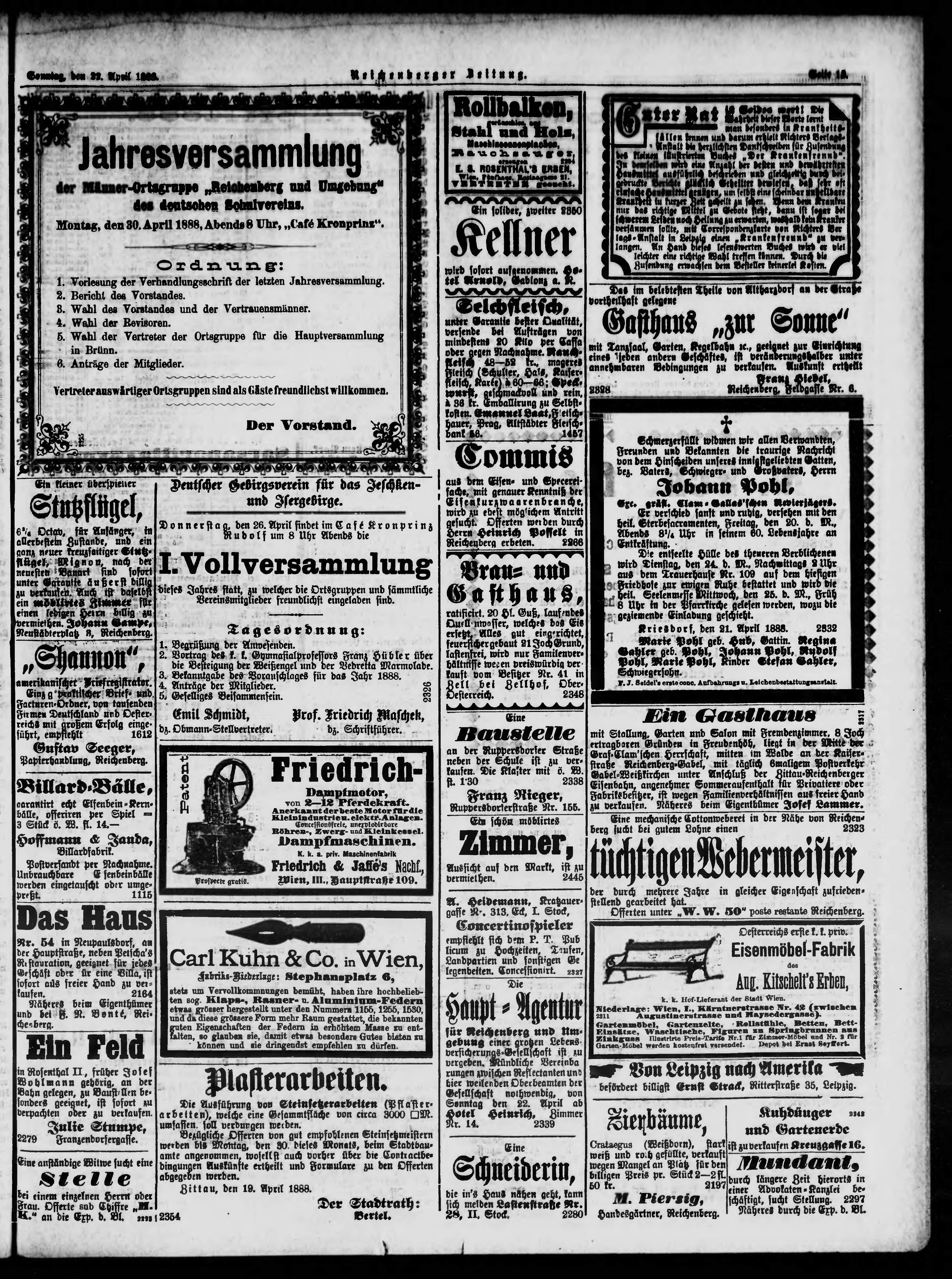 * Datum vydání výtisku: 22.4.1888 Číslo výtisku: 94