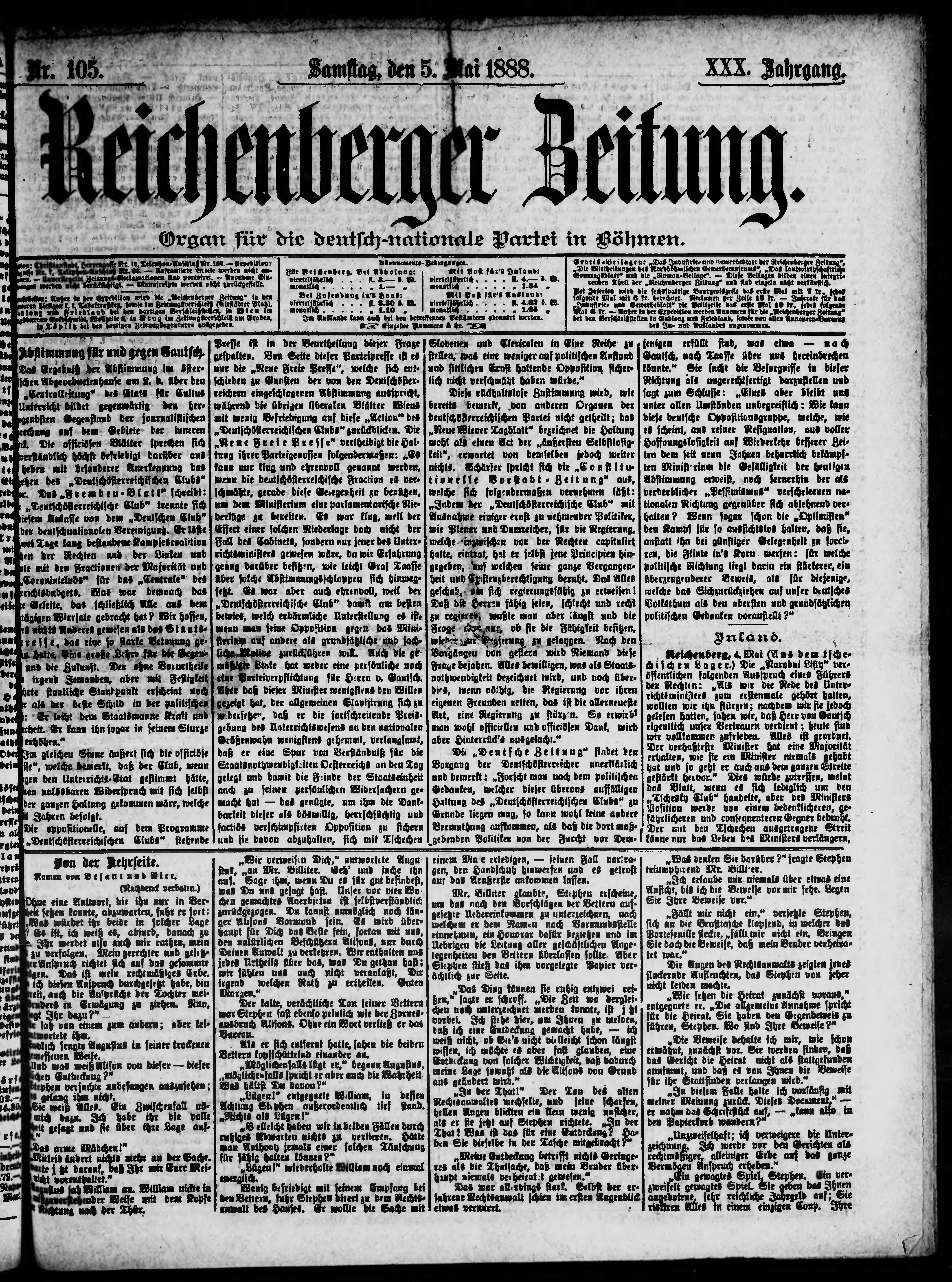 * Datum vydání výtisku: 5.5.1888 Číslo výtisku: 105