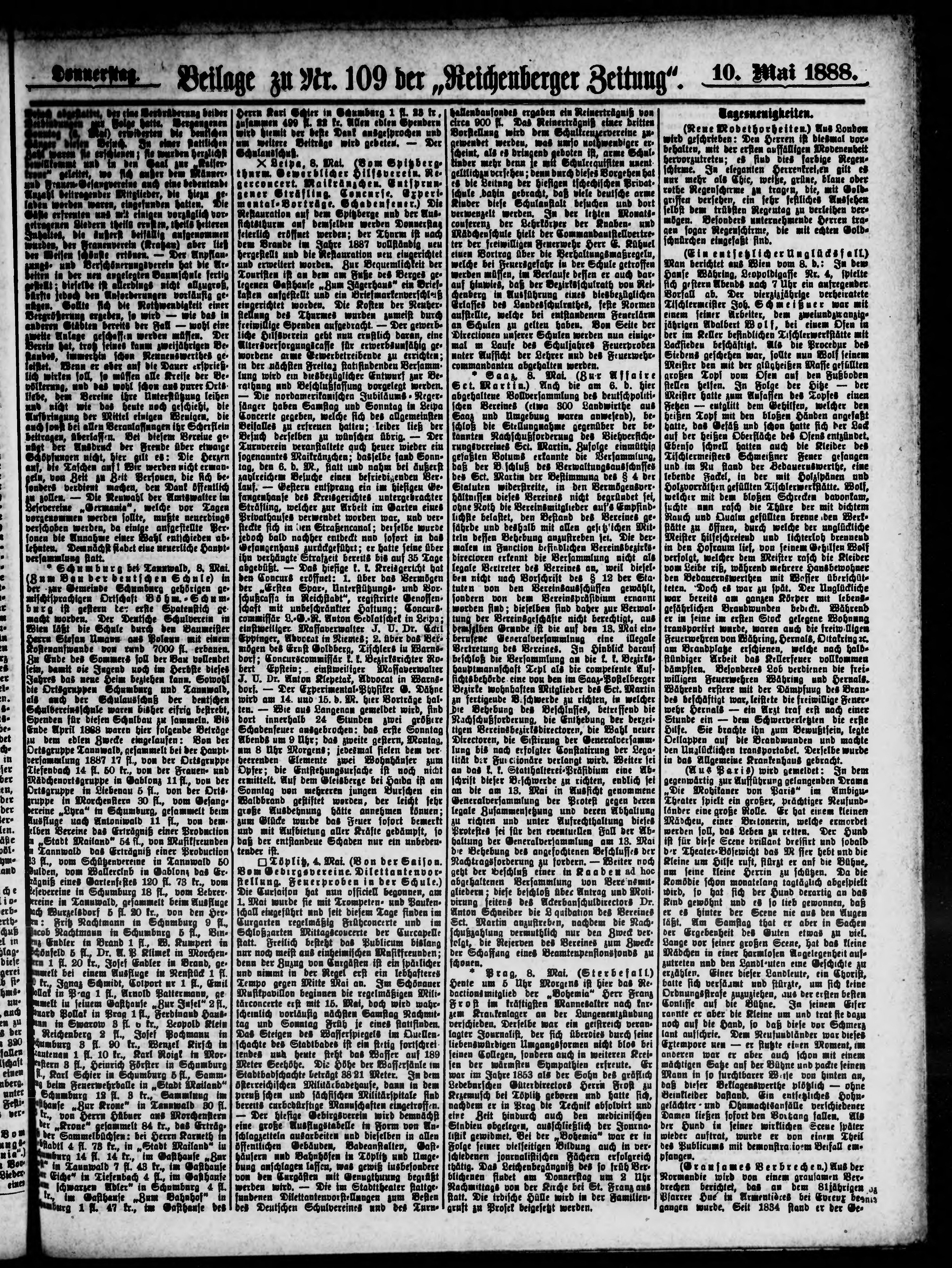 * Datum vydání výtisku: 10.5.1888 Číslo výtisku: 109