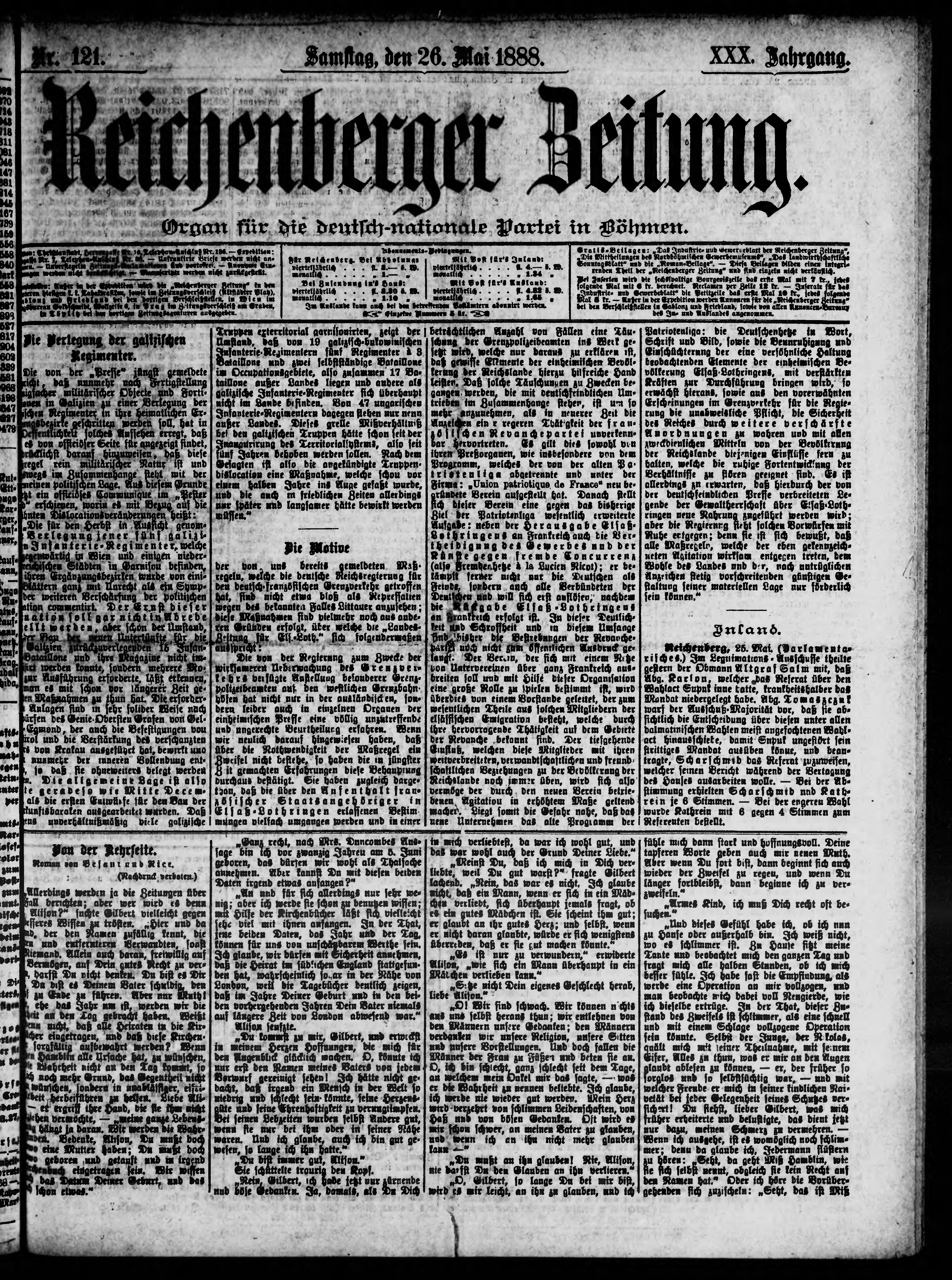 * Datum vydání výtisku: 26.5.1888 Číslo výtisku: 121
