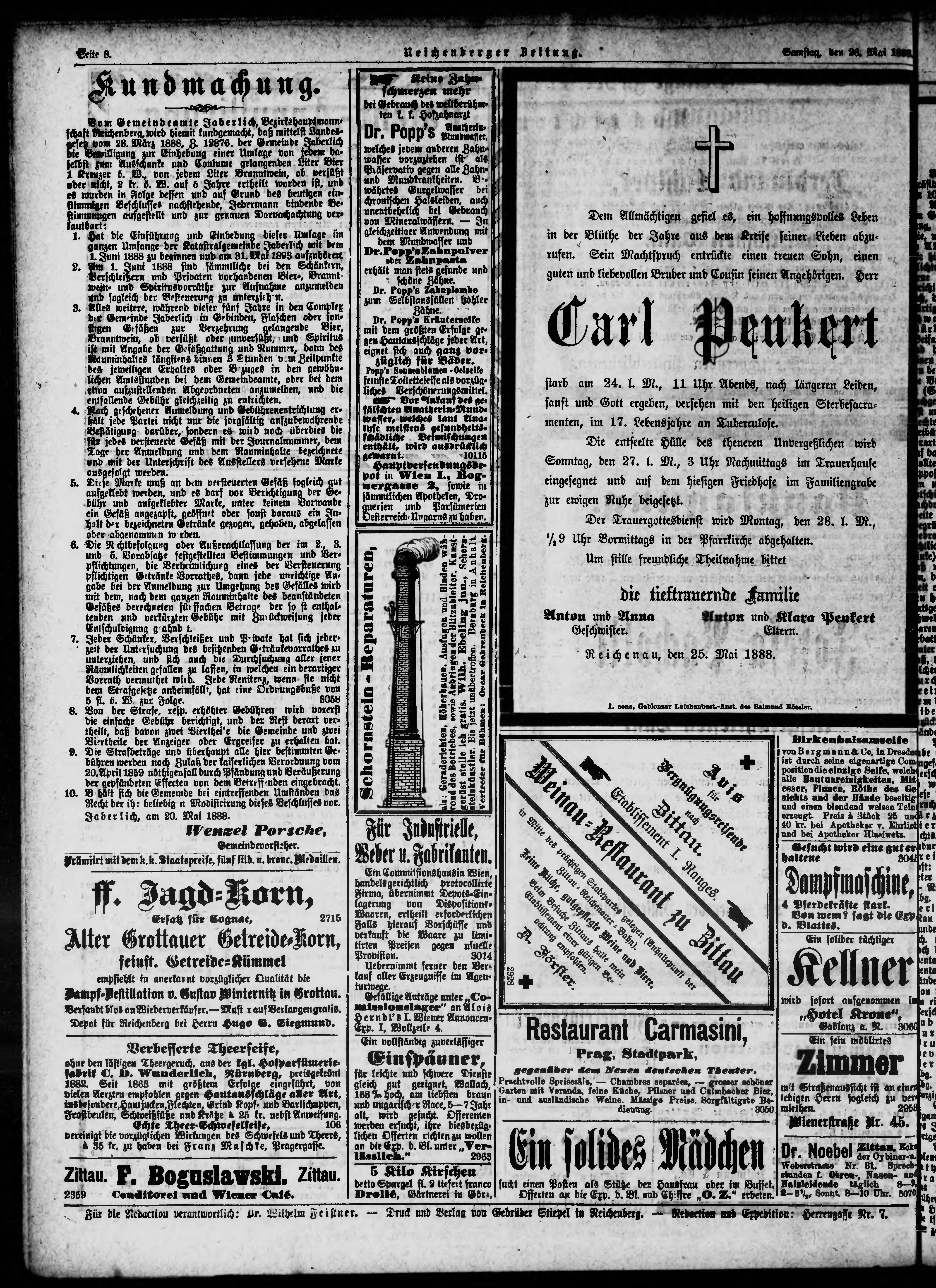 * Datum vydání výtisku: 26.5.1888 Číslo výtisku: 121
