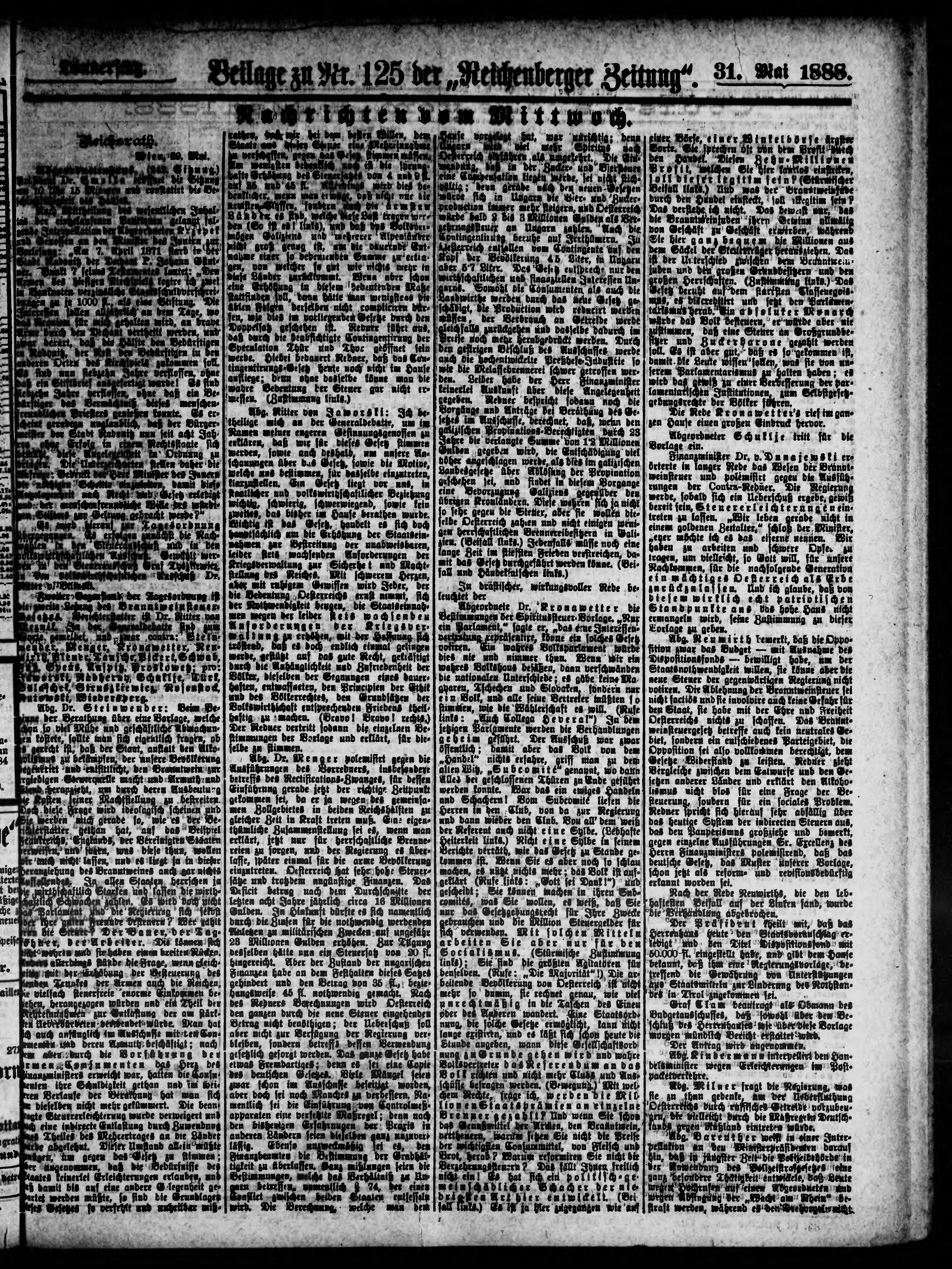 * Datum vydání výtisku: 31.5.1888 Číslo výtisku: 125