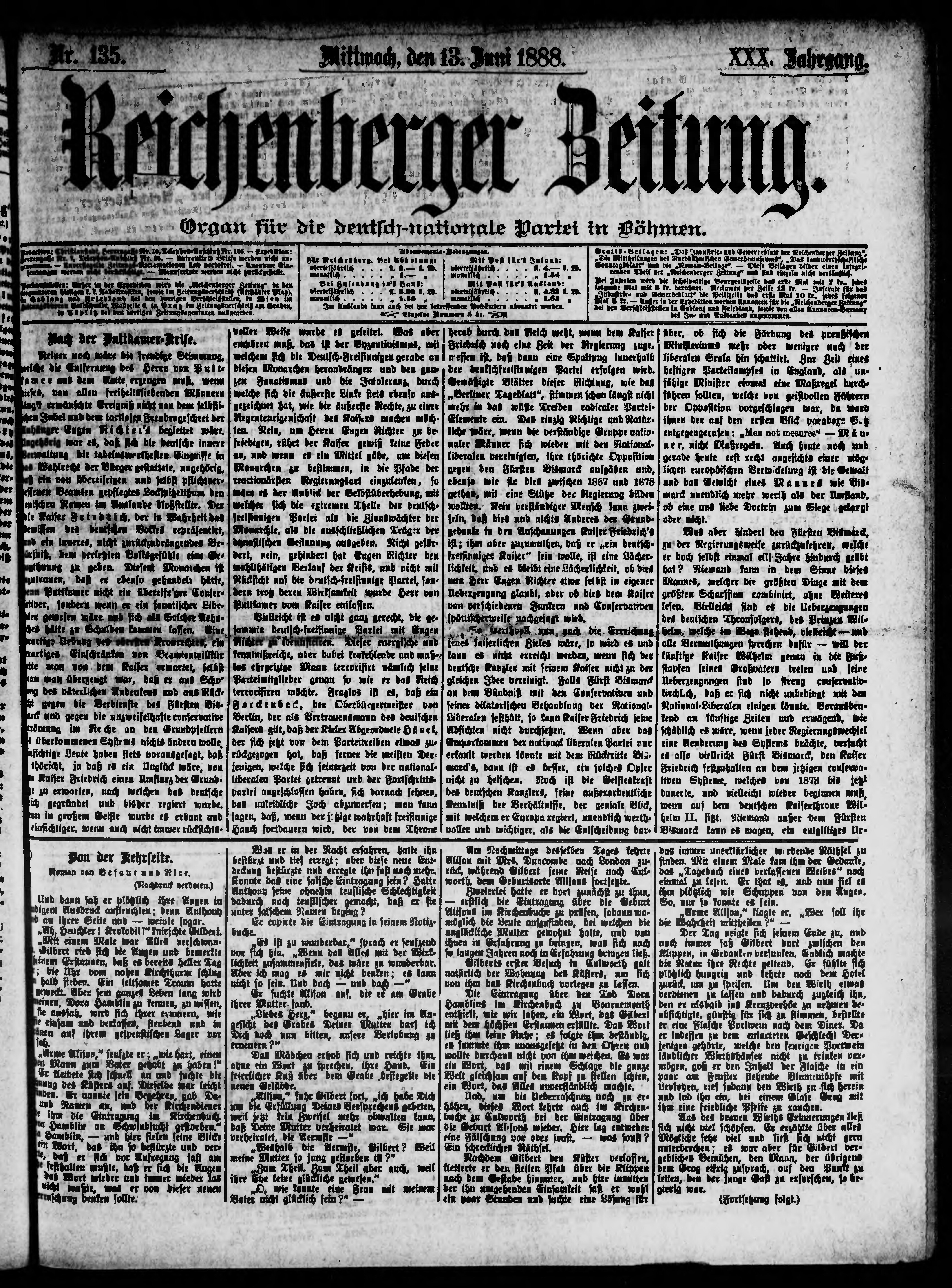 * Datum vydání výtisku: 13.6.1888 Číslo výtisku: 135