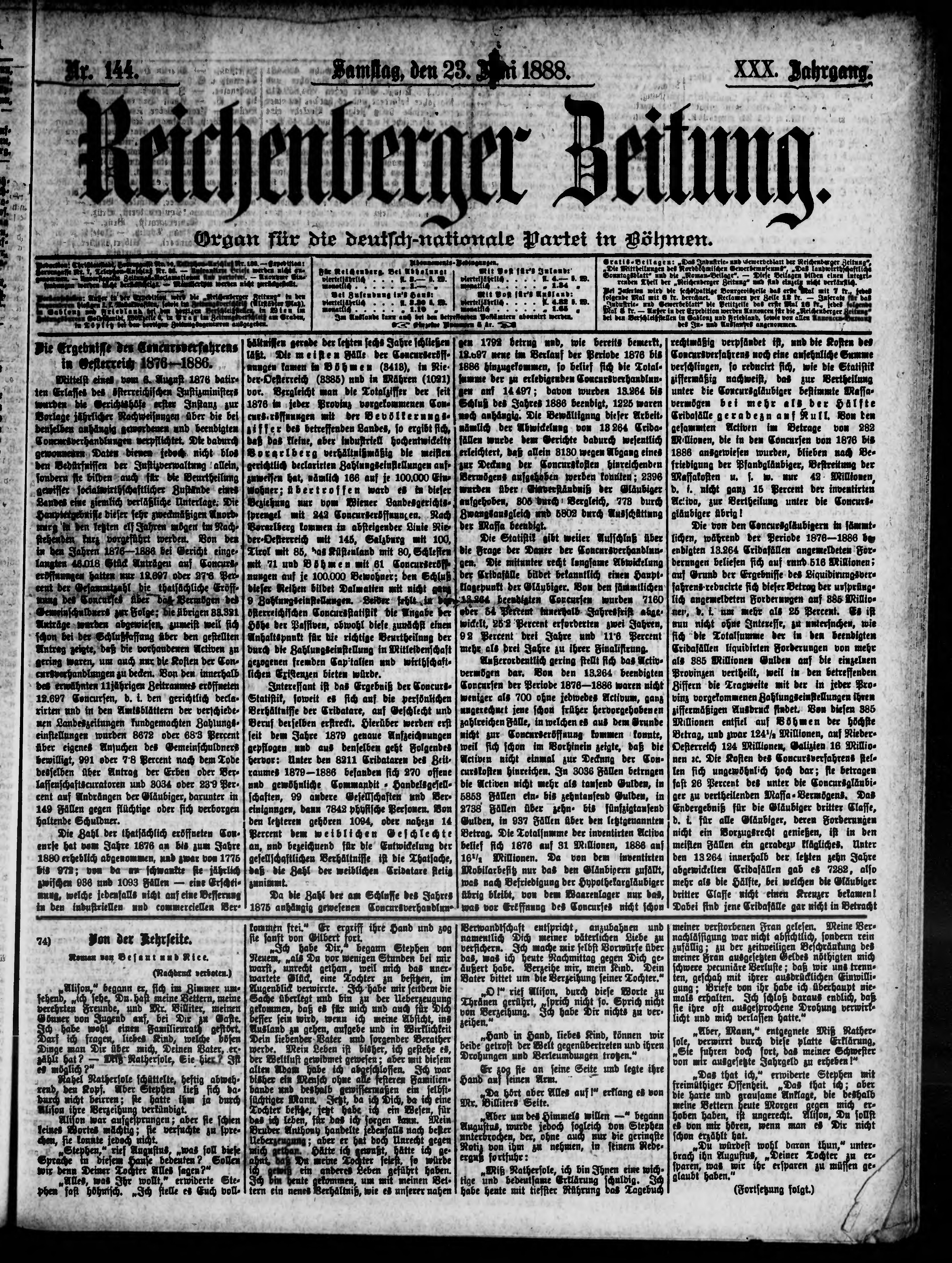 * Datum vydání výtisku: 23.6.1888 Číslo výtisku: 144