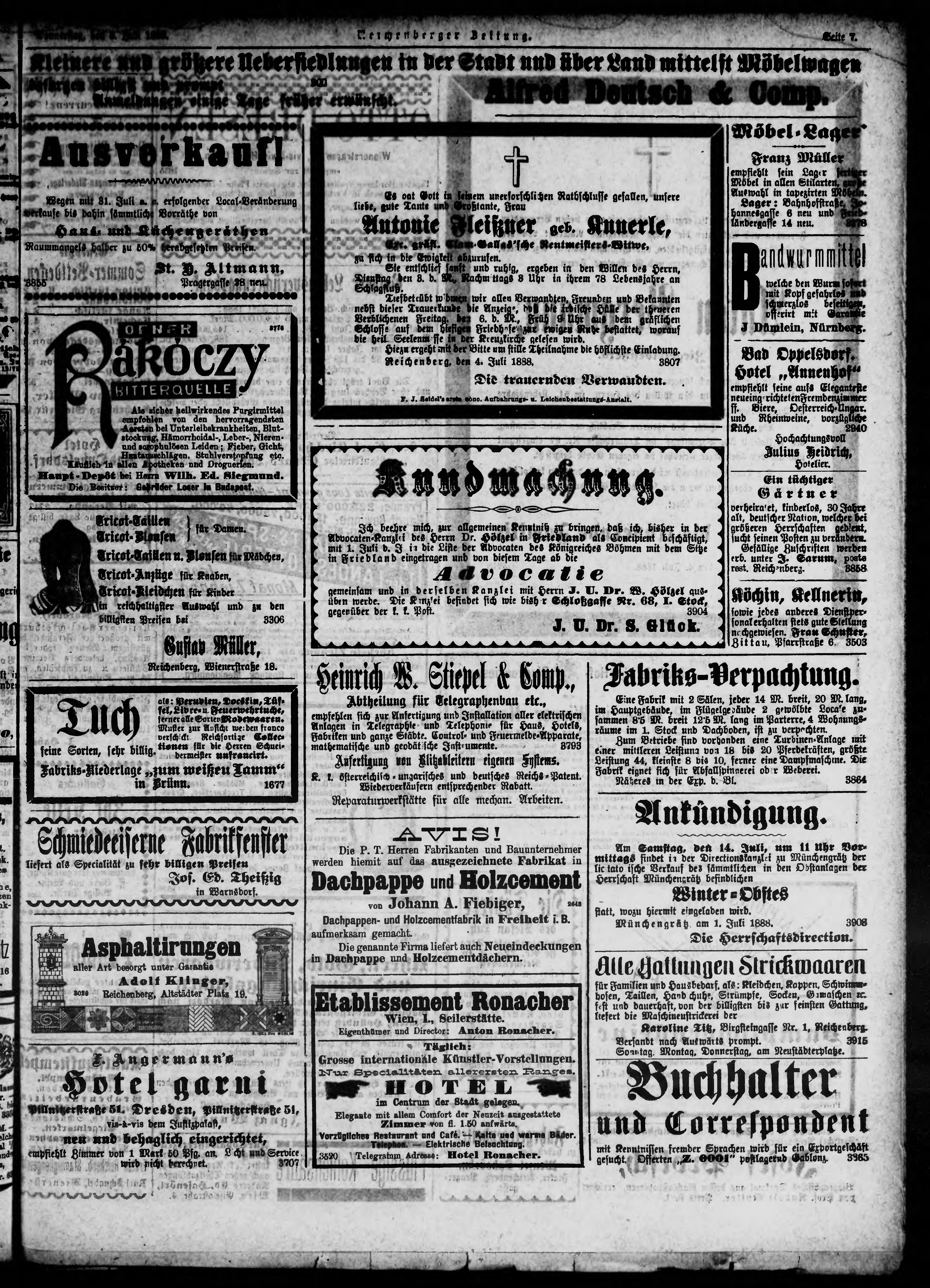 * Datum vydání výtisku: 5.7.1888 Číslo výtisku: 154