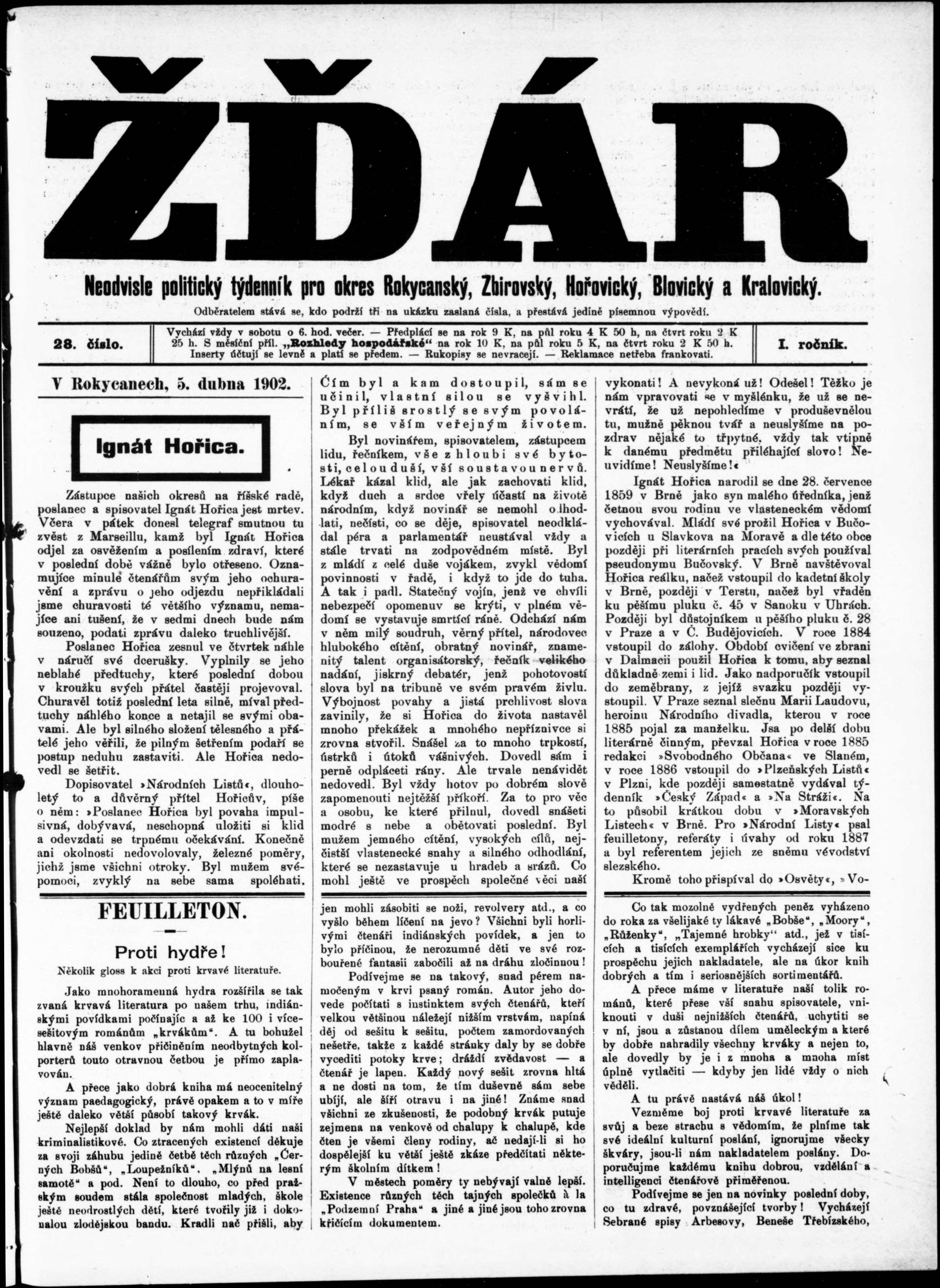 * Datum vydání výtisku: 5.4.1902 Číslo výtisku: 28