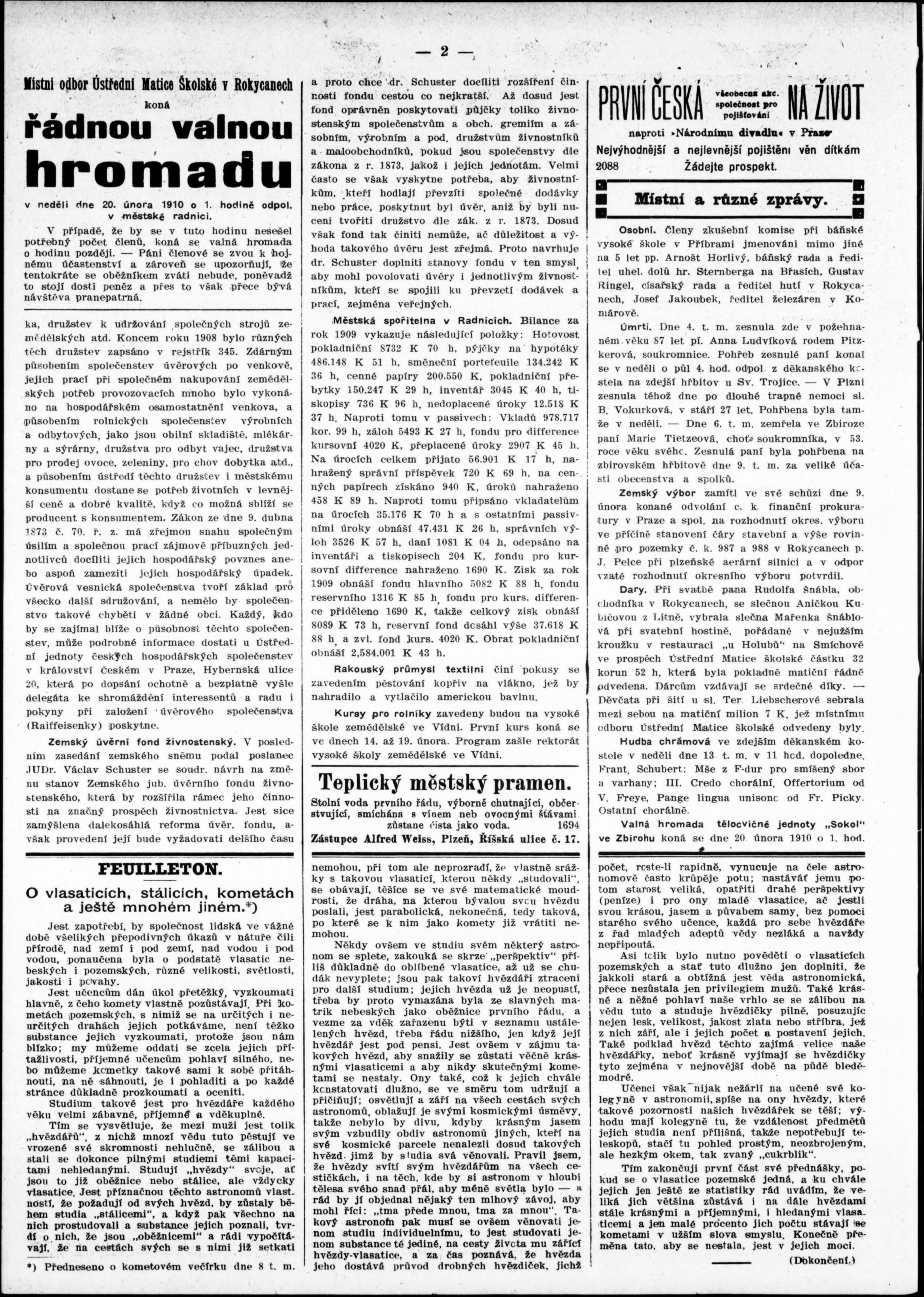 * Datum vydání výtisku: 12.2.1910 Číslo výtisku: 7