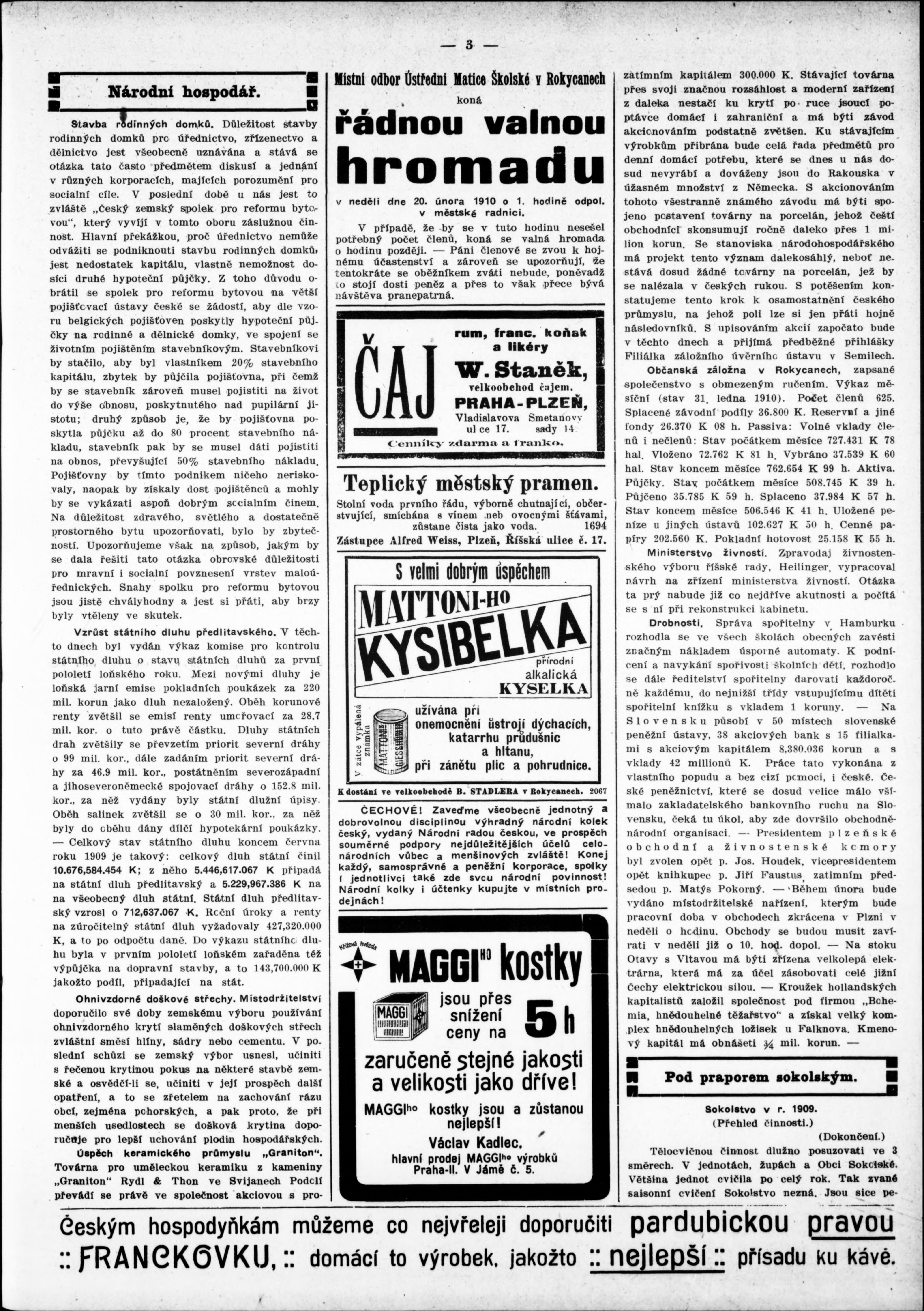 * Datum vydání výtisku: 19.2.1910 Číslo výtisku: 8