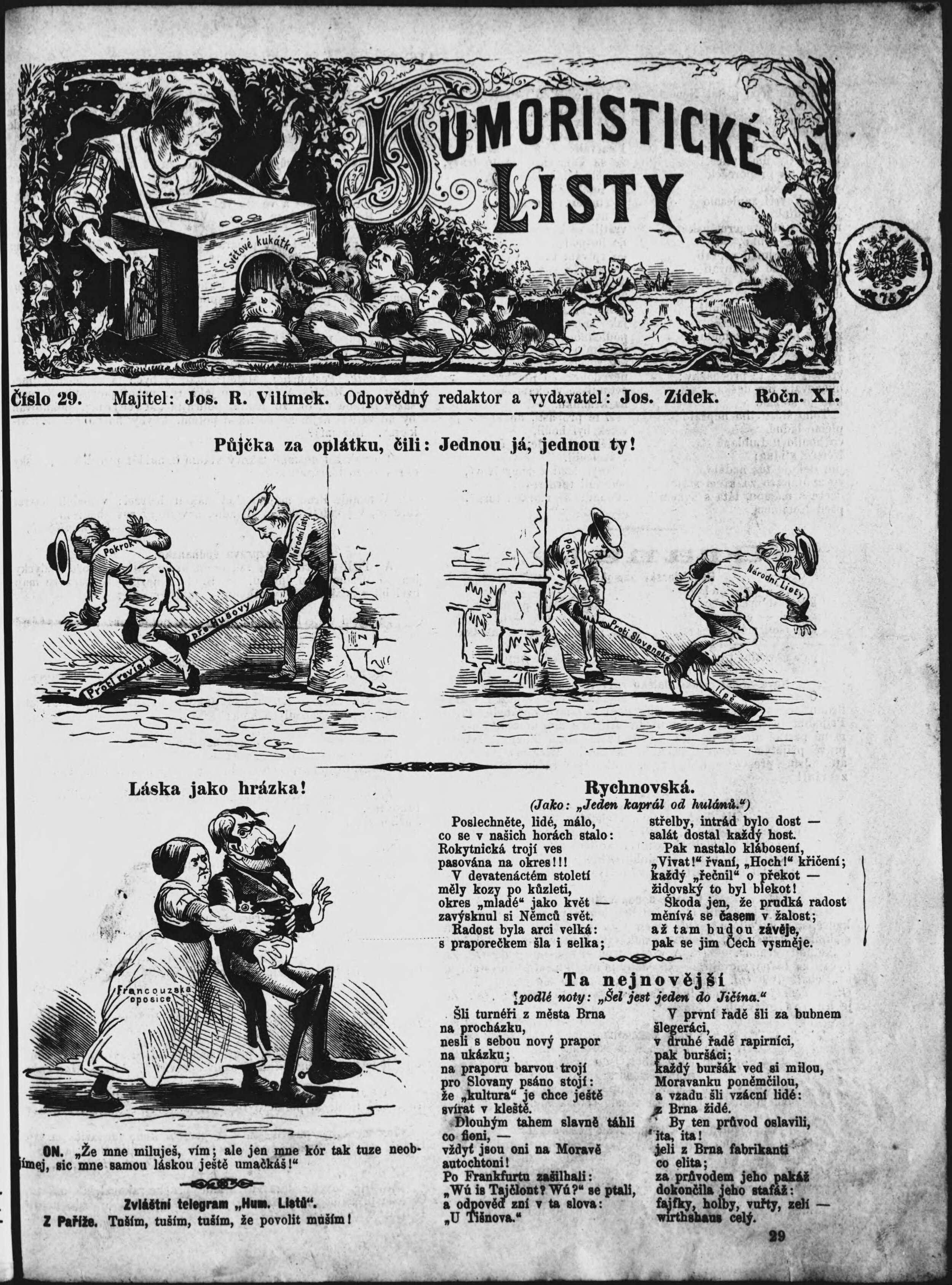 * Datum vydání výtisku: 17.7.1869 Číslo výtisku: 29