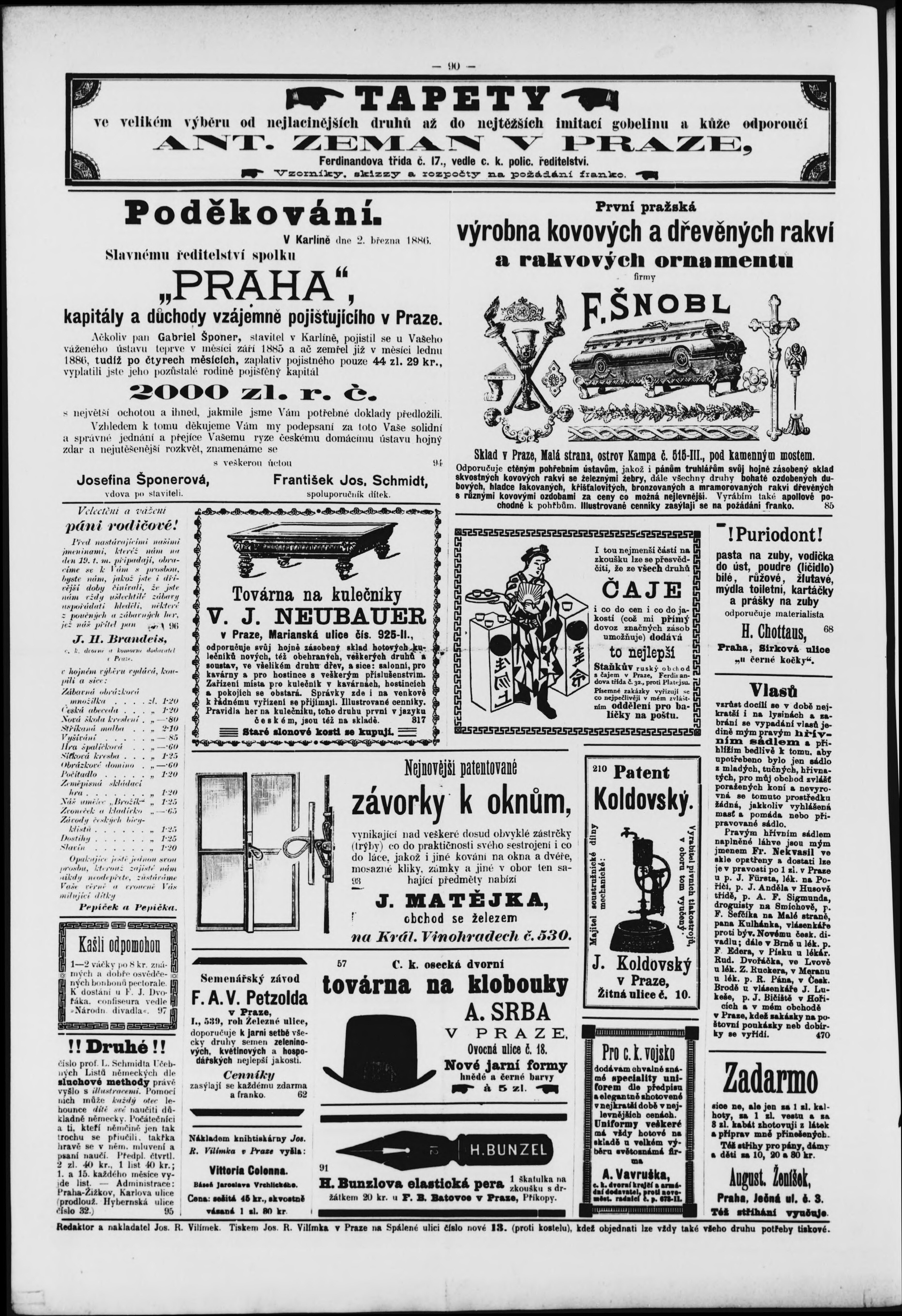 * Datum vydání výtisku: 12.3.1886 Číslo výtisku: 11