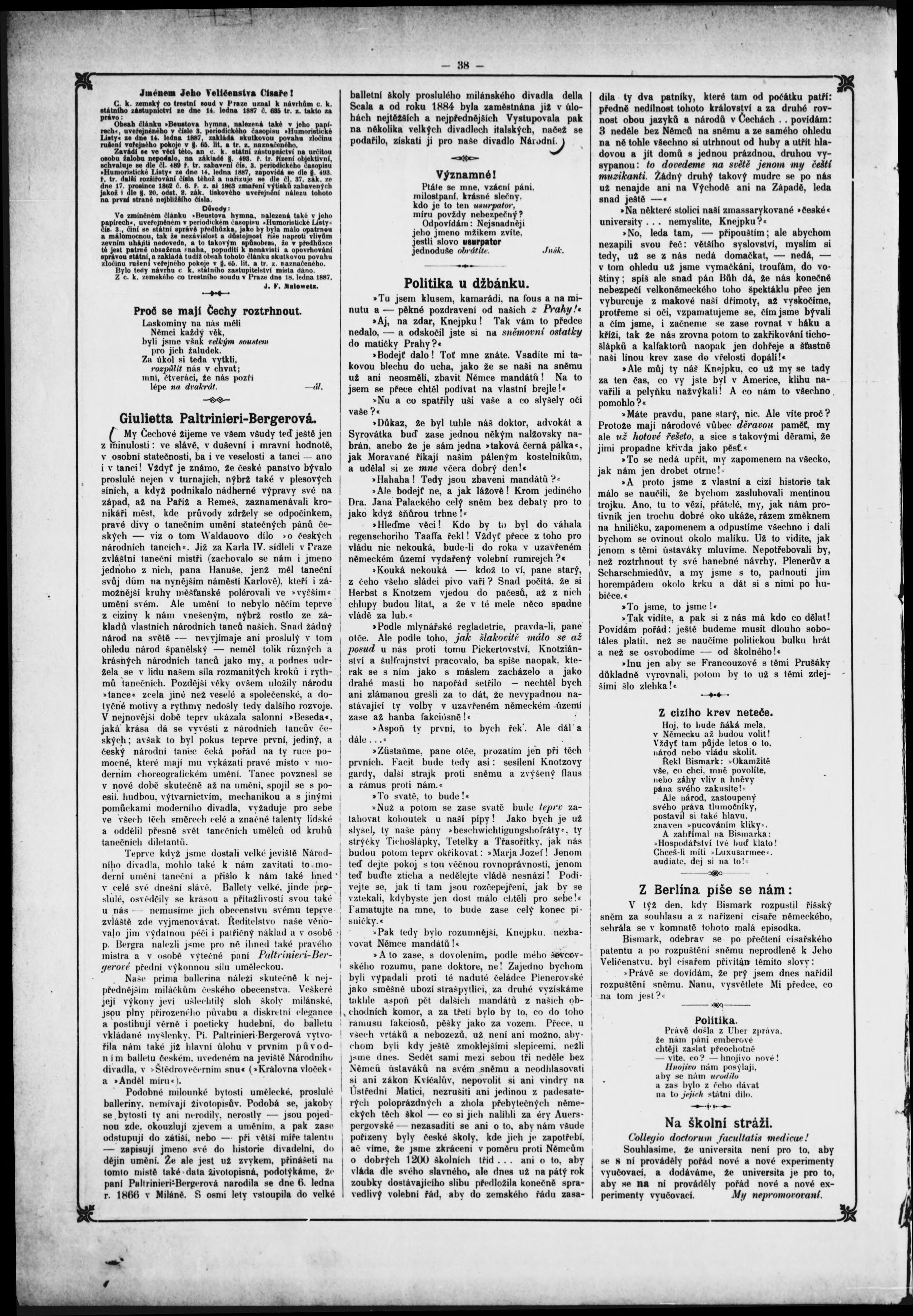 * Datum vydání výtisku: 28.1.1887 Číslo výtisku: 5