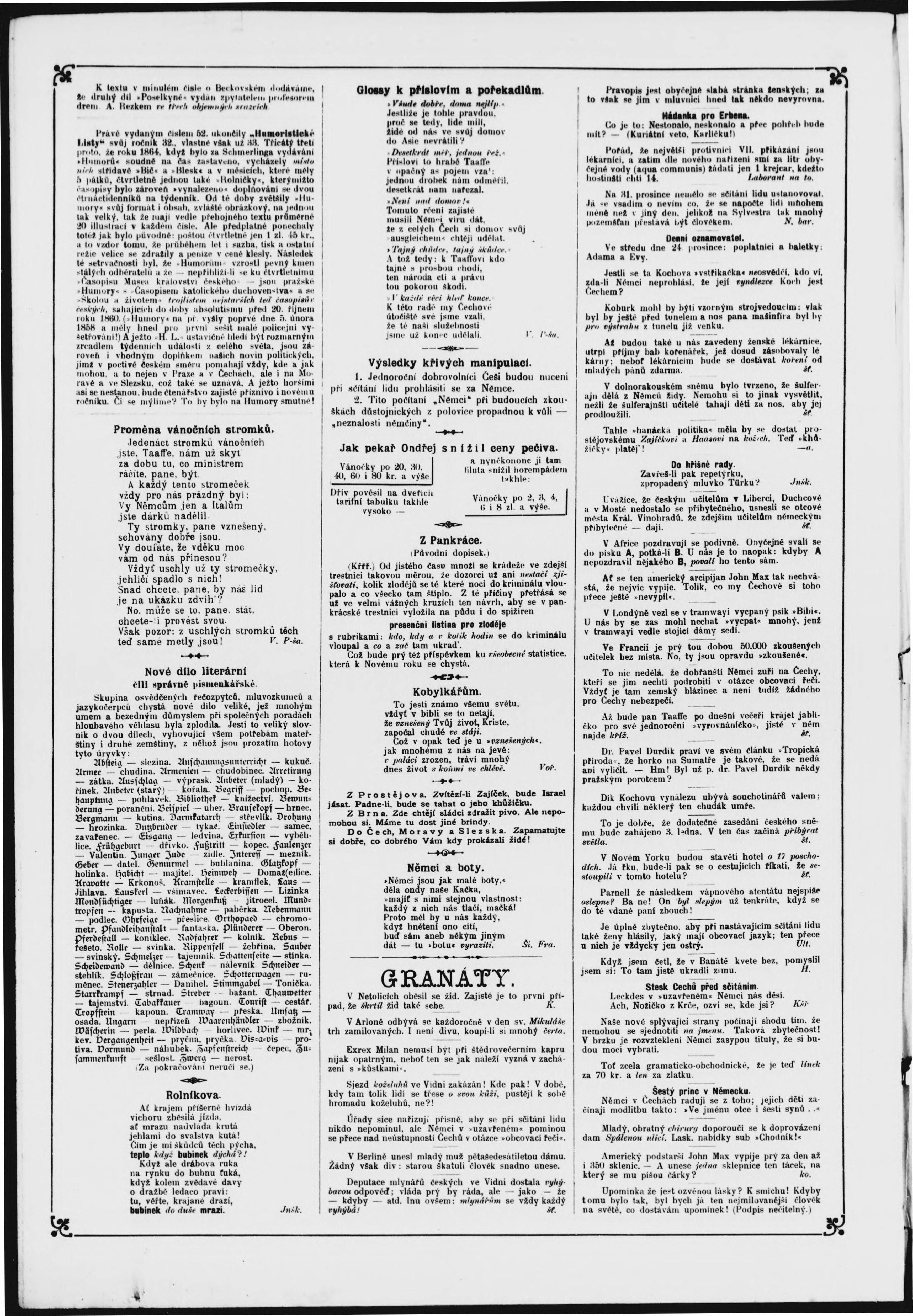 * Datum vydání výtisku: 24.12.1890 Číslo výtisku: 52