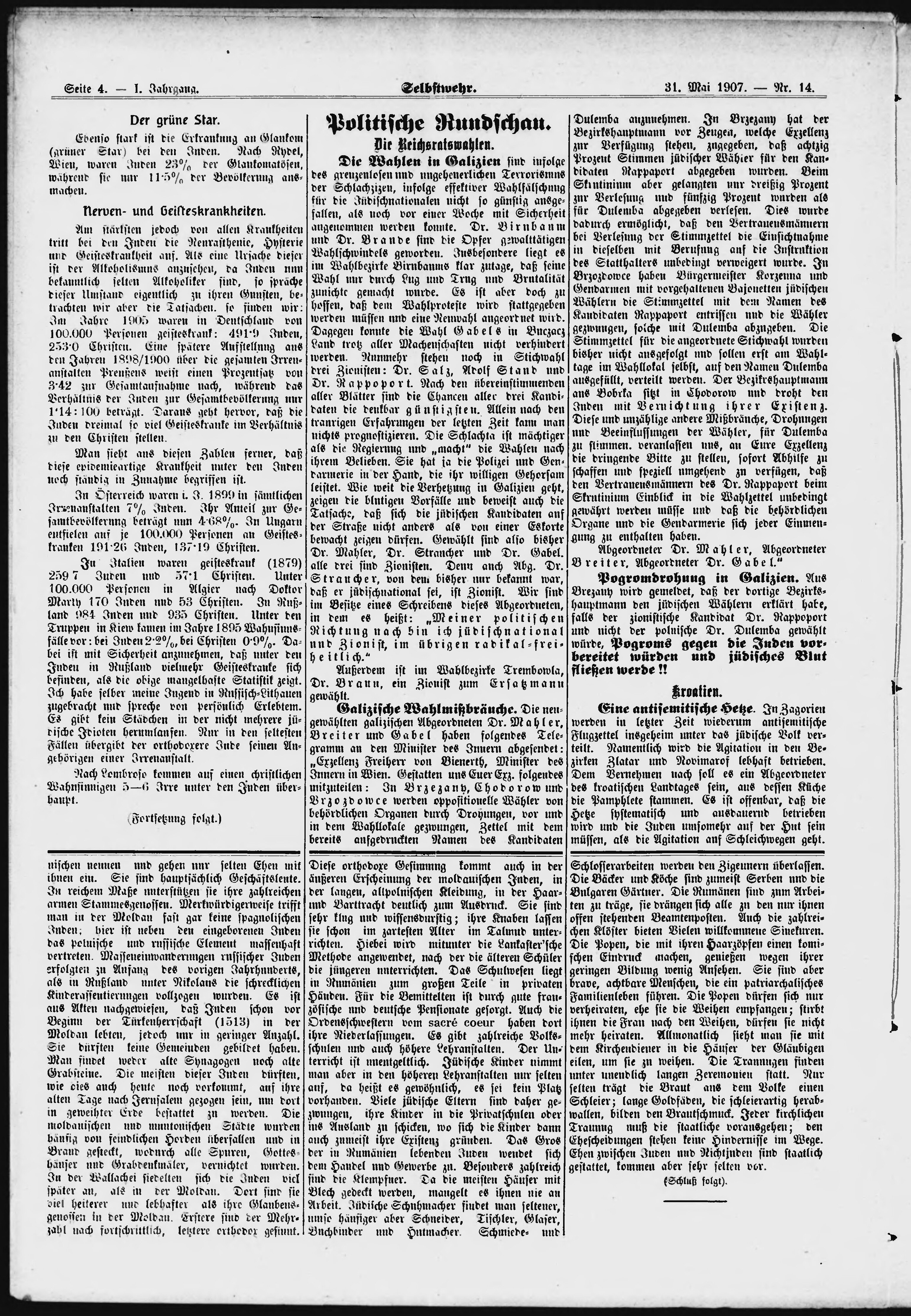 * Datum vydání výtisku: 31.5.1907 Číslo výtisku: 14