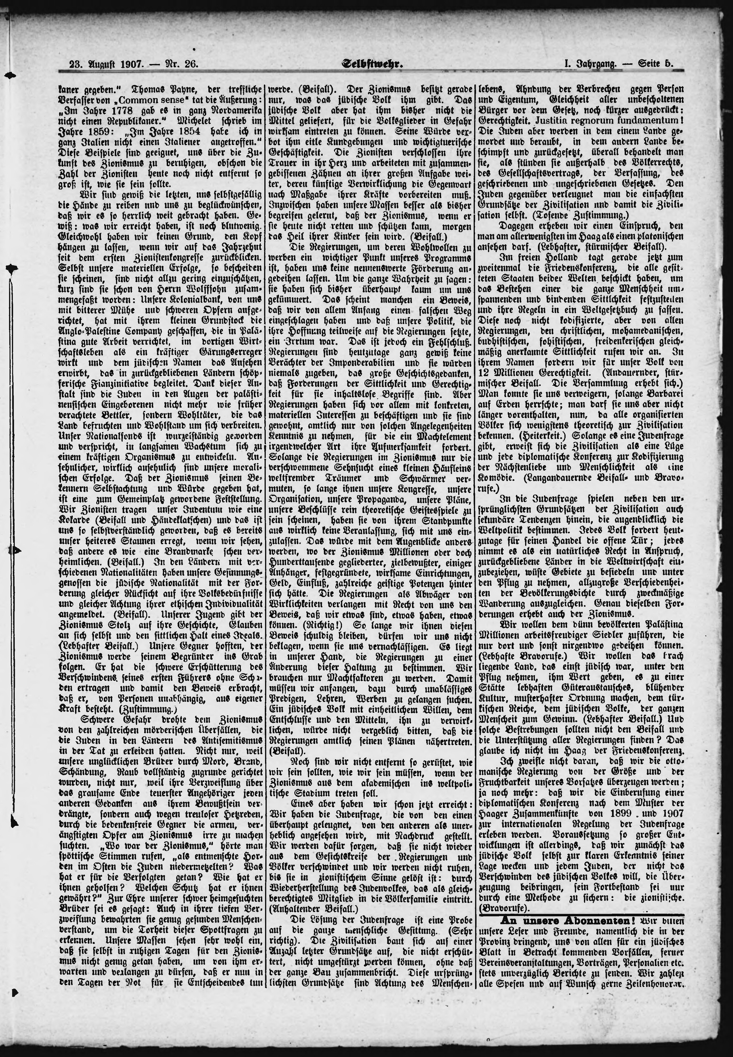 * Datum vydání výtisku: 23.8.1907 Číslo výtisku: 26