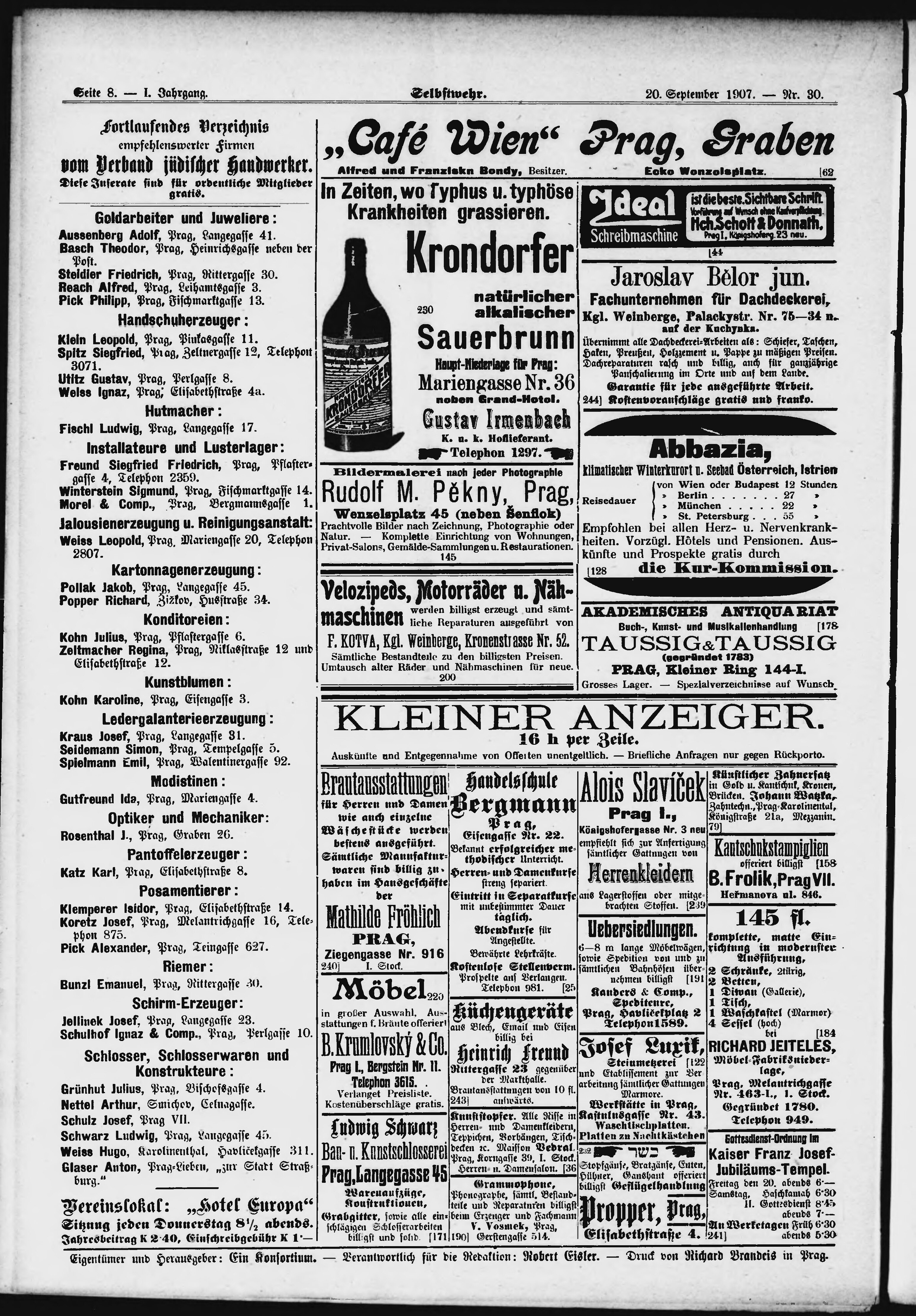 * Datum vydání výtisku: 20.9.1907 Číslo výtisku: 30