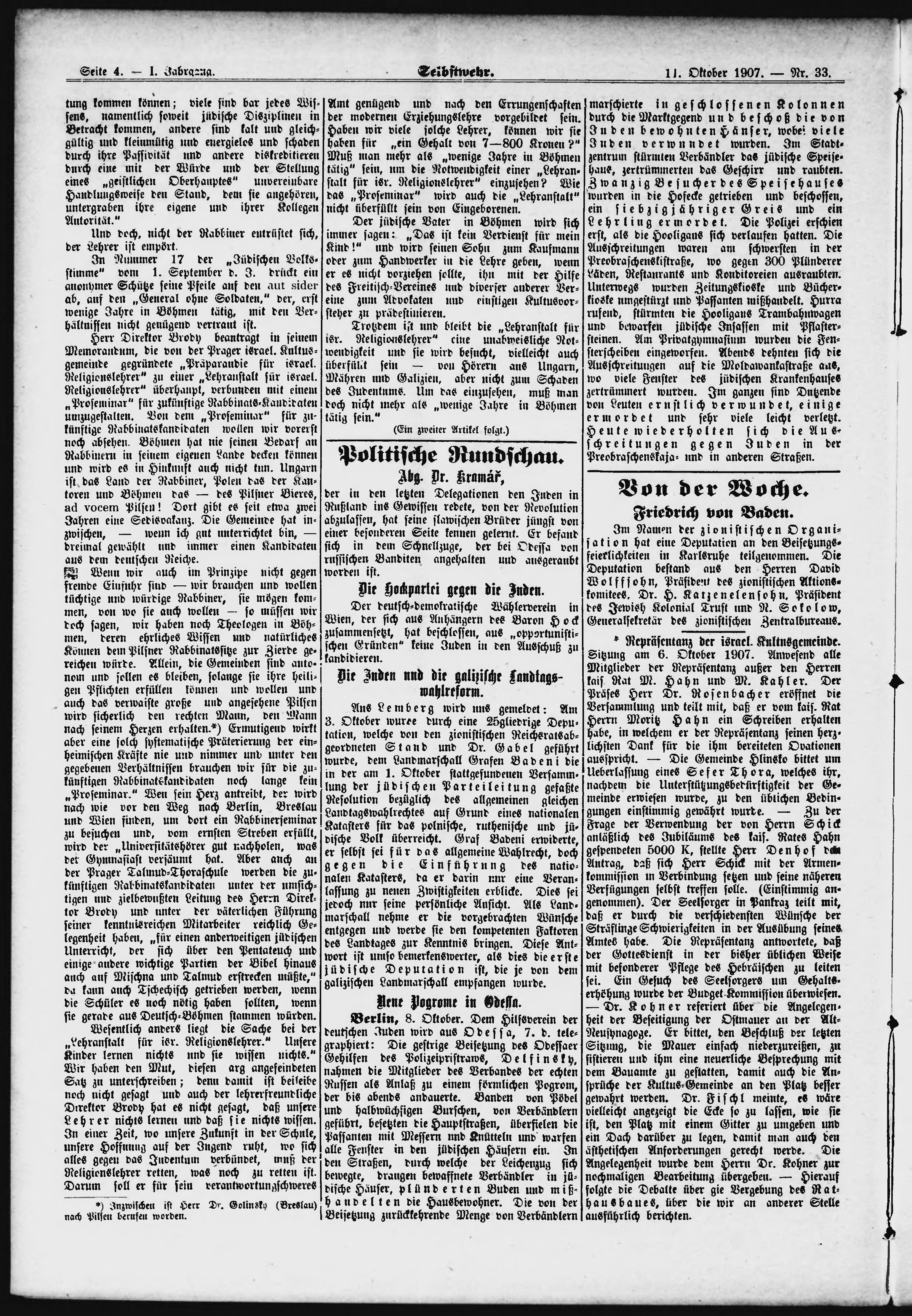 * Datum vydání výtisku: 11.10.1907 Číslo výtisku: 33