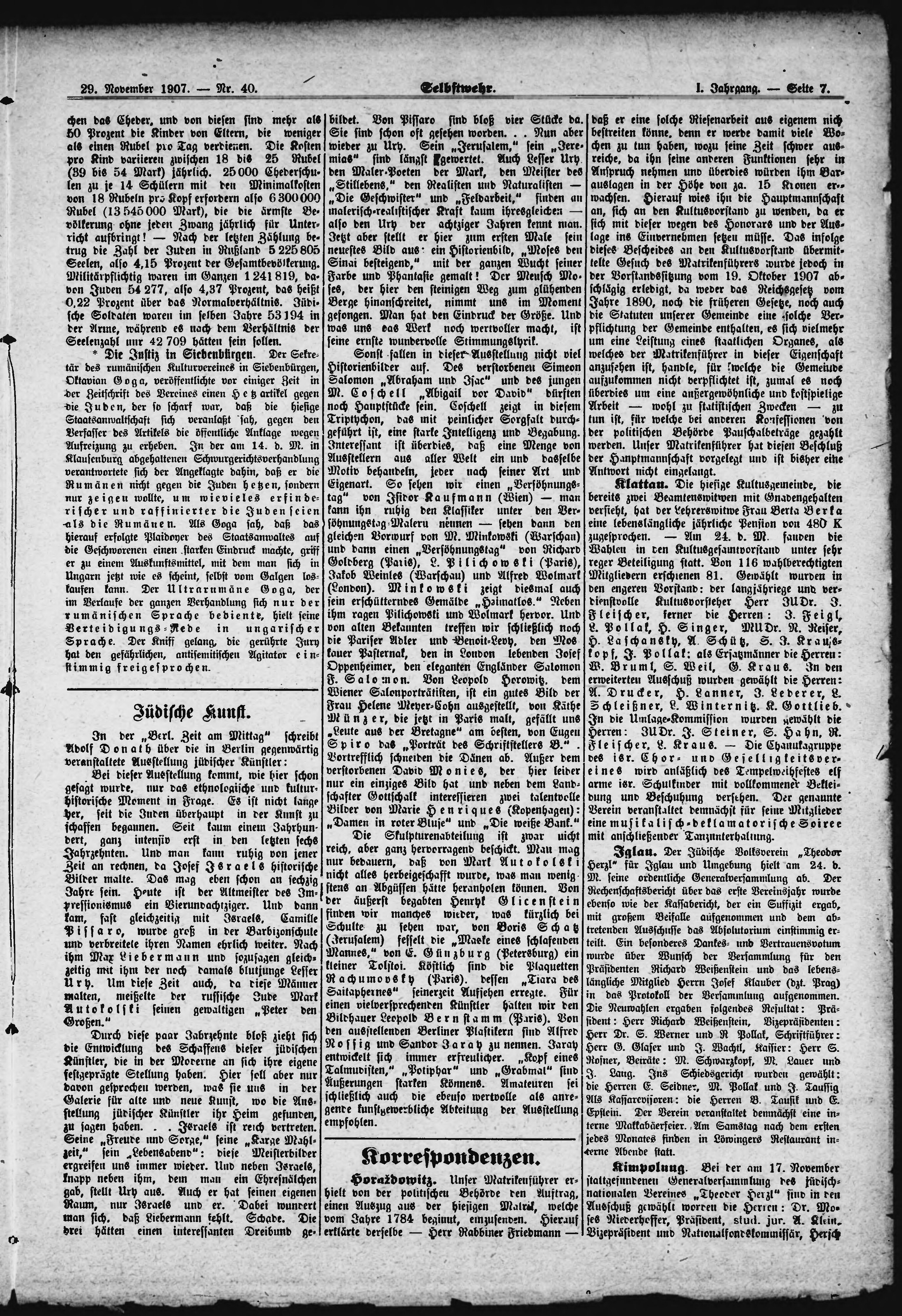 * Datum vydání výtisku: 29.11.1907 Číslo výtisku: 40