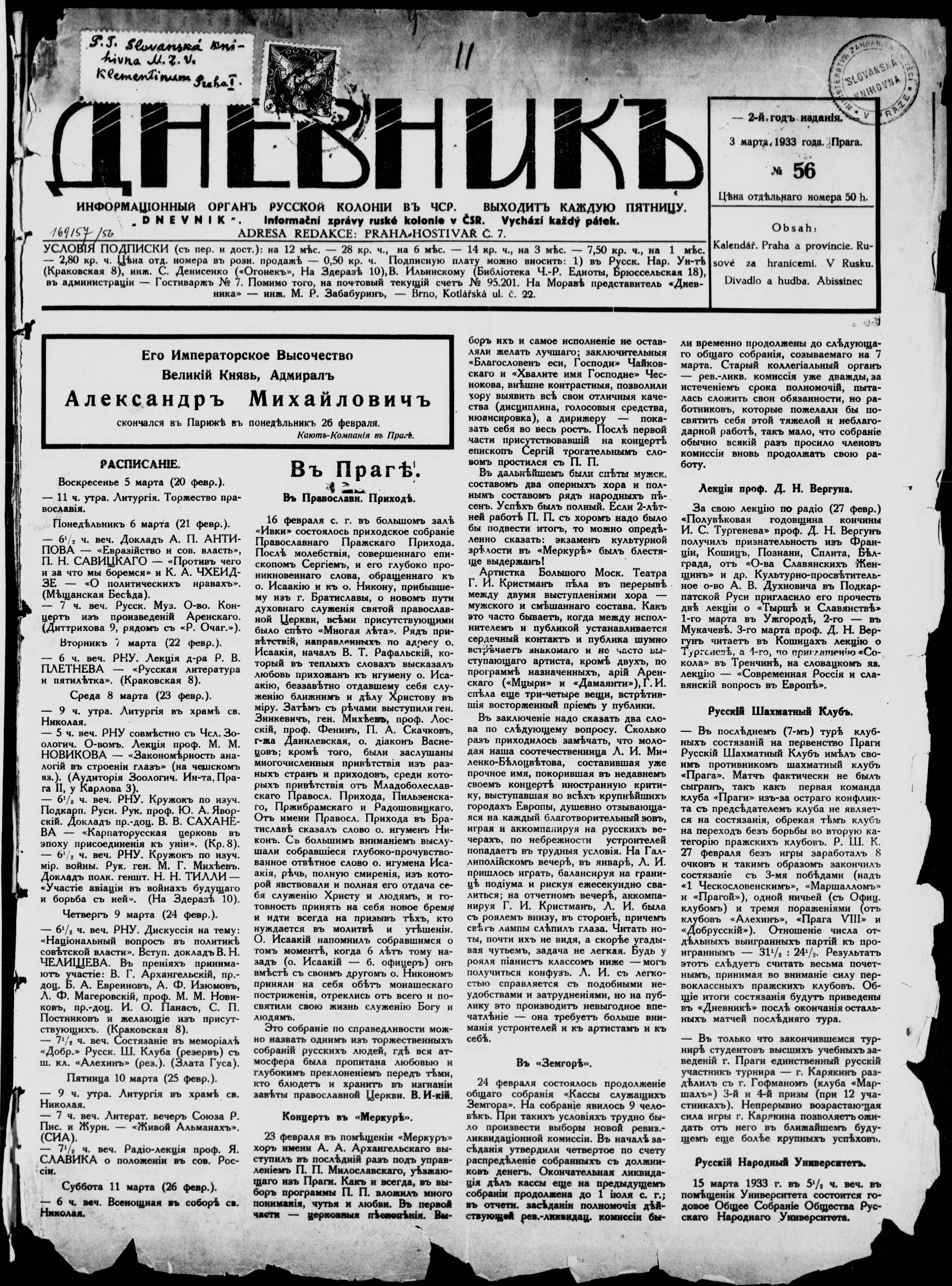 * Datum vydání výtisku: 3.3.1933 Číslo výtisku: 56