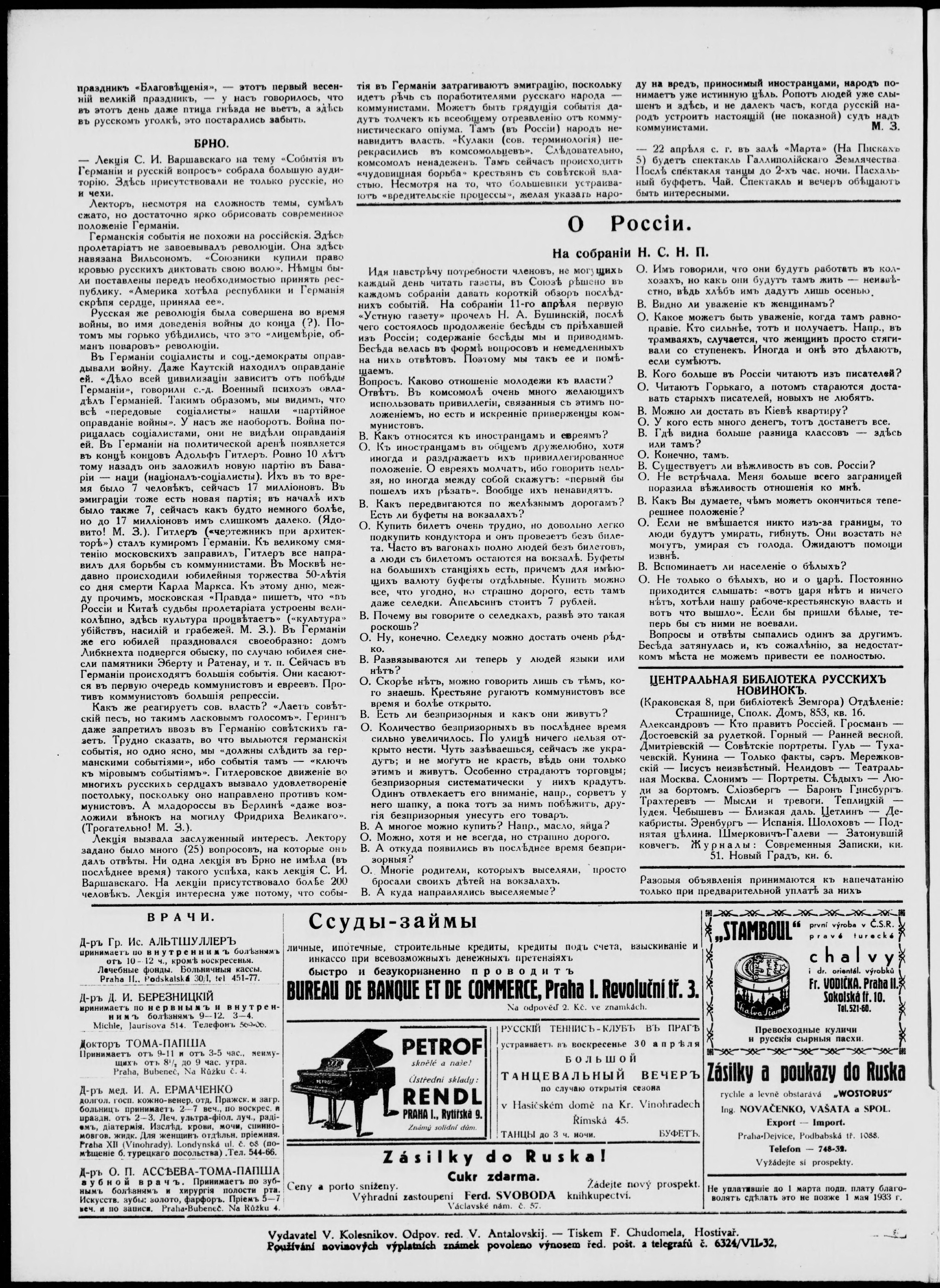 * Datum vydání výtisku: 14.4.1933 Číslo výtisku: 62