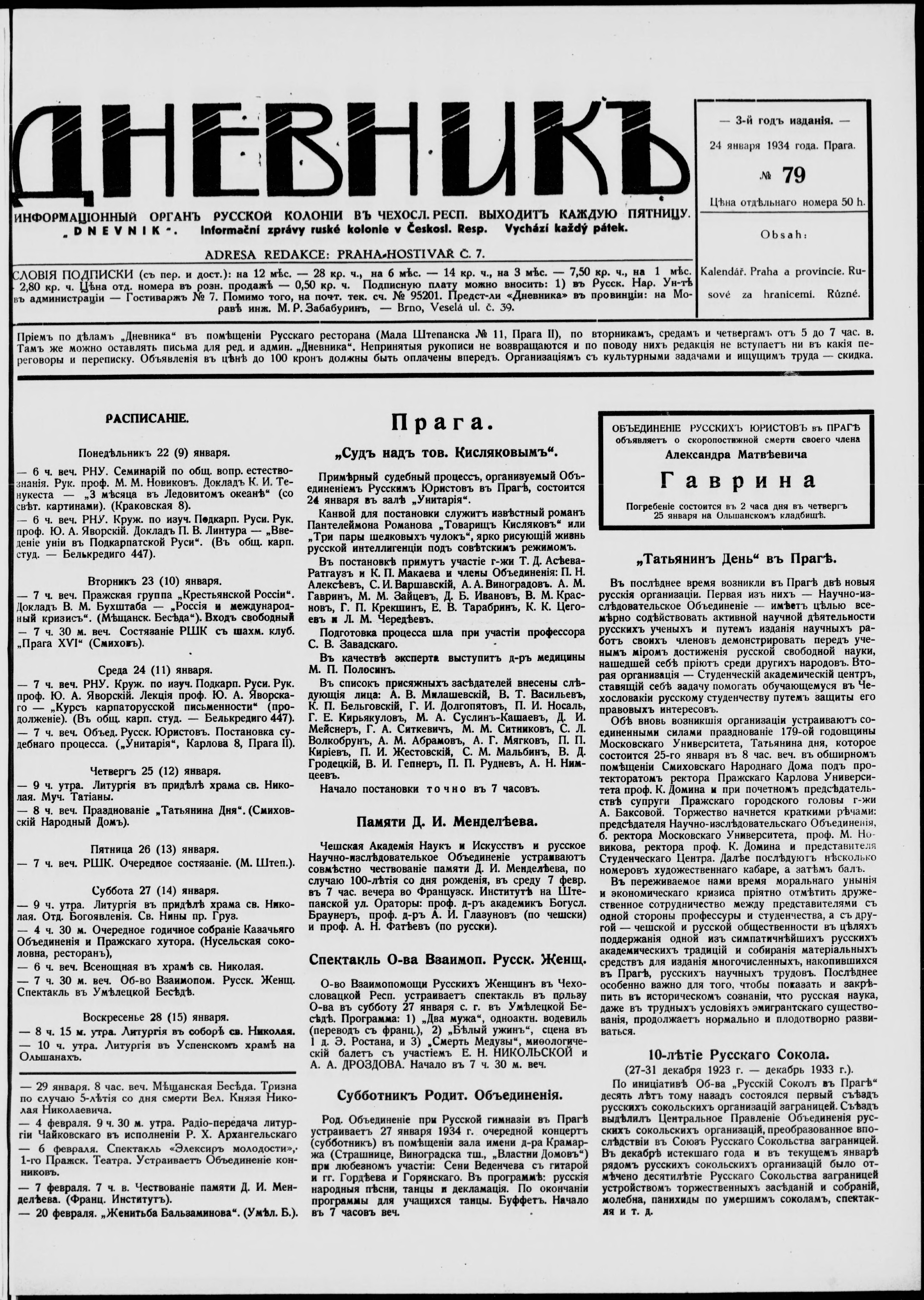 * Datum vydání výtisku: 24.1.1934 Číslo výtisku: 79