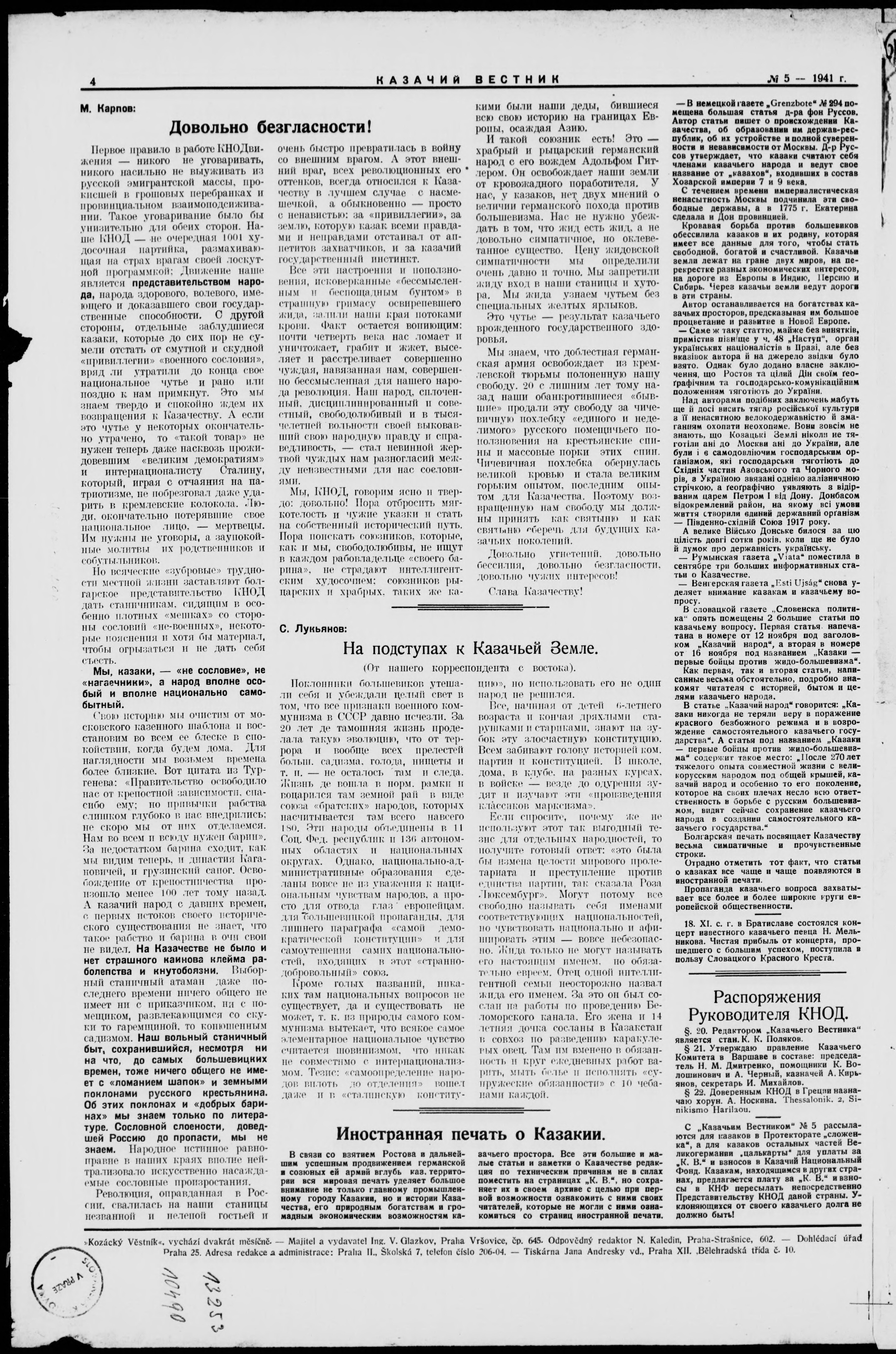 * Datum vydání výtisku: 1.12.1941 Číslo výtisku: 5
