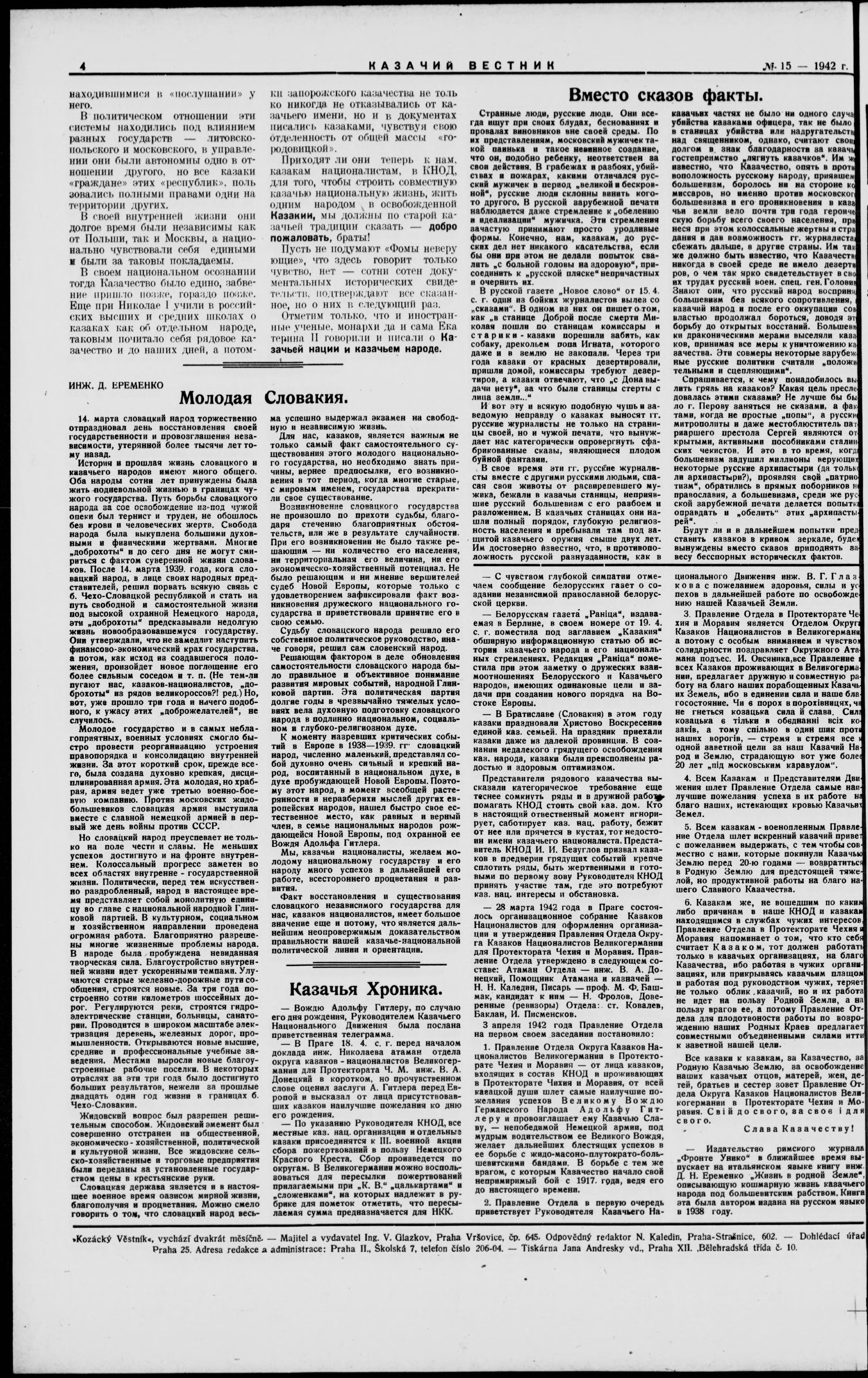 * Datum vydání výtisku: 1.5.1942 Číslo výtisku: 15