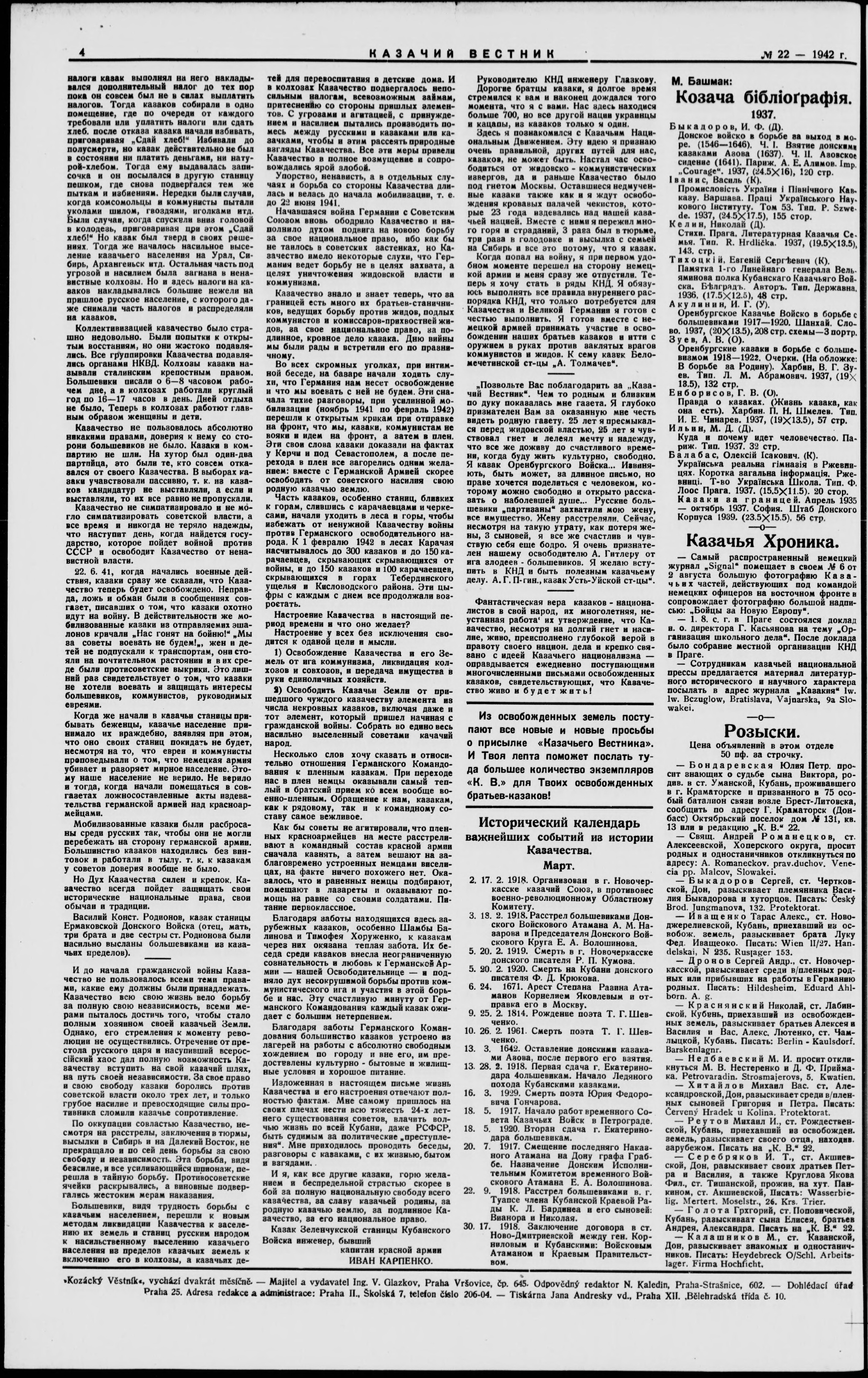 Kazachii vestnik = Kozácky věstník = Der Kosakenbote = Kozac'kyi visnyk