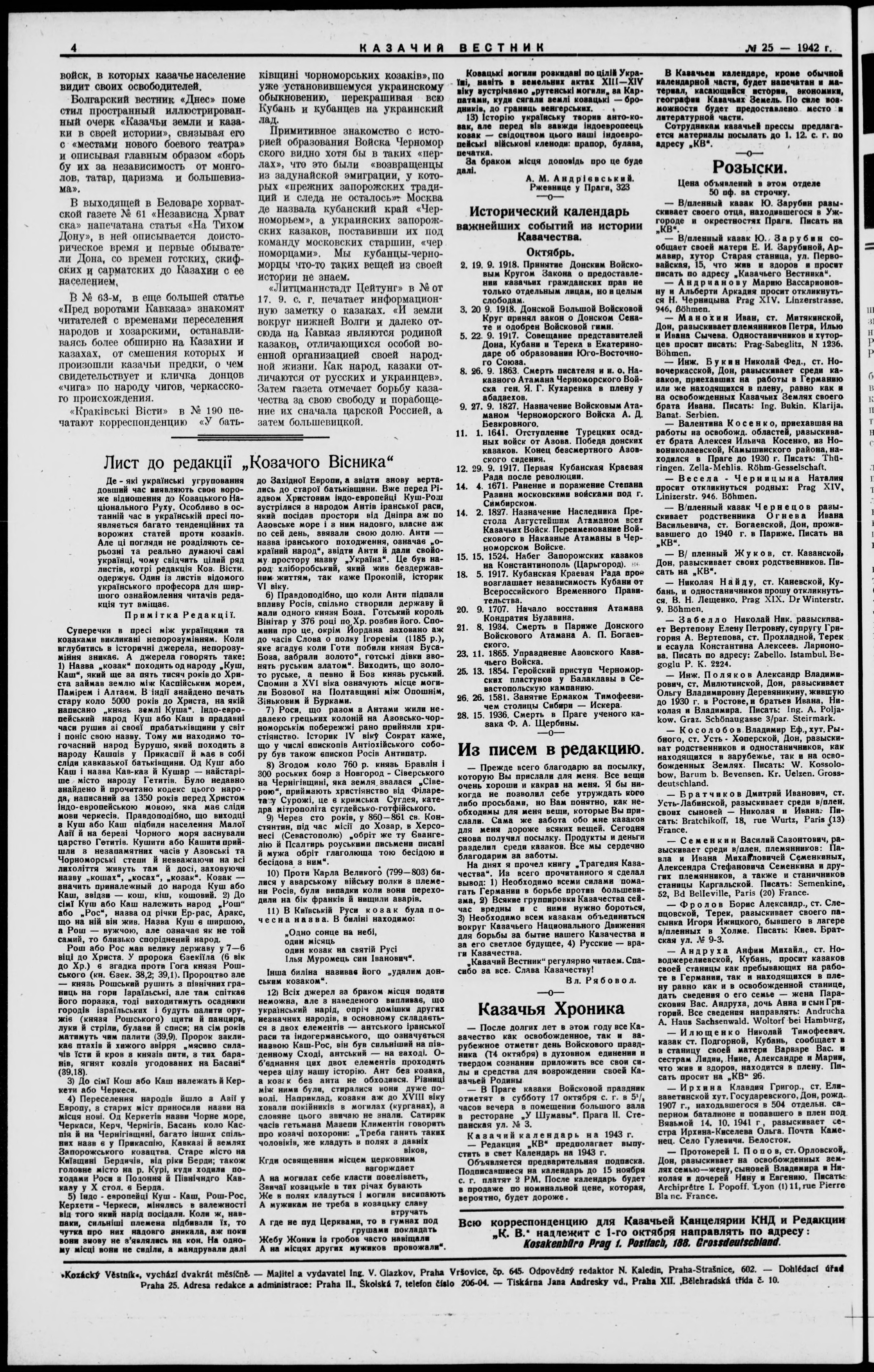 Kazachii vestnik = Kozácky věstník = Der Kosakenbote = Kozac'kyi visnyk