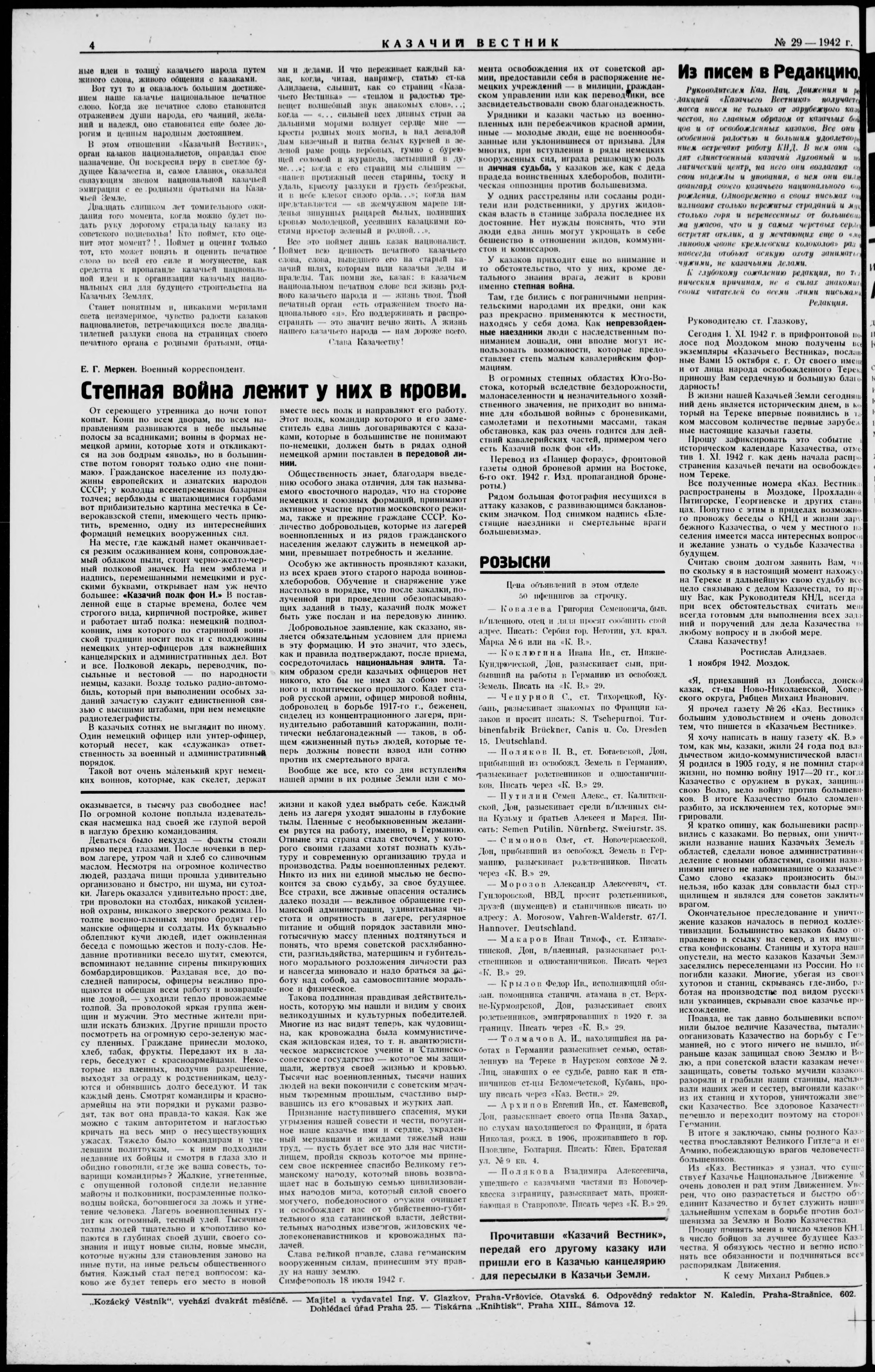 Kazachii vestnik = Kozácky věstník = Der Kosakenbote = Kozac'kyi visnyk