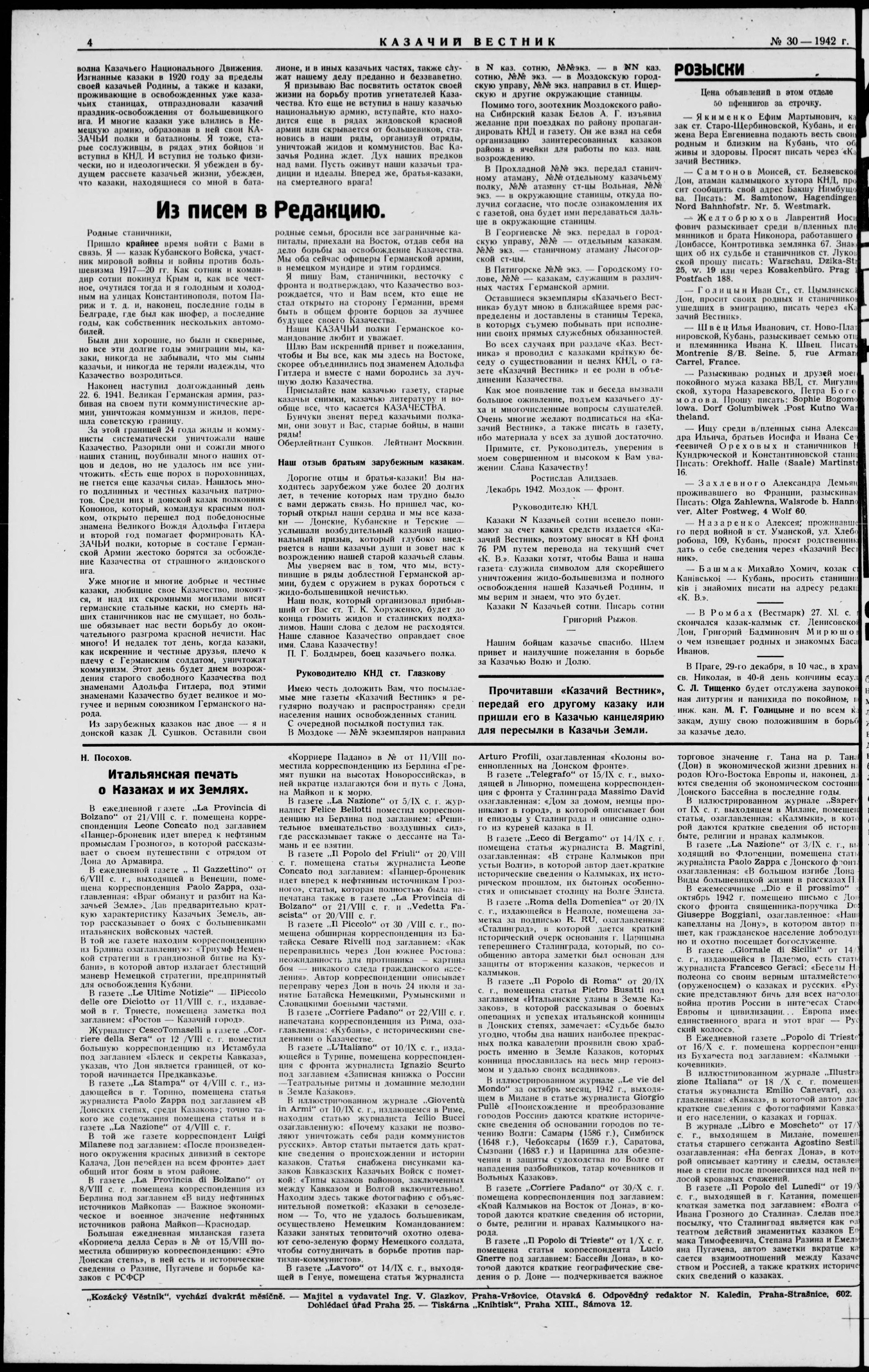 Kazachii vestnik = Kozácky věstník = Der Kosakenbote = Kozac'kyi visnyk