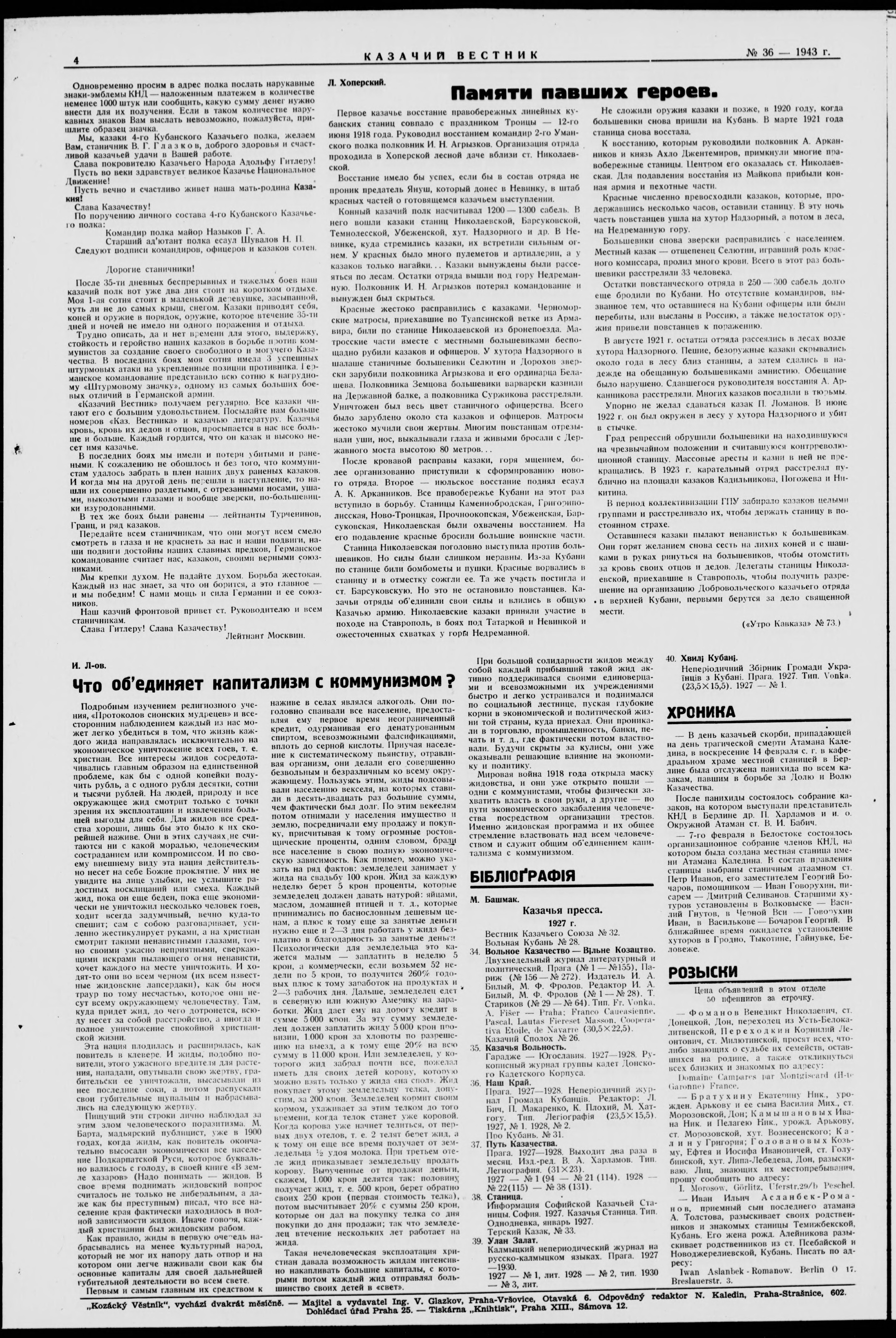 Kazachii vestnik = Kozácky věstník = Der Kosakenbote = Kozac'kyi visnyk