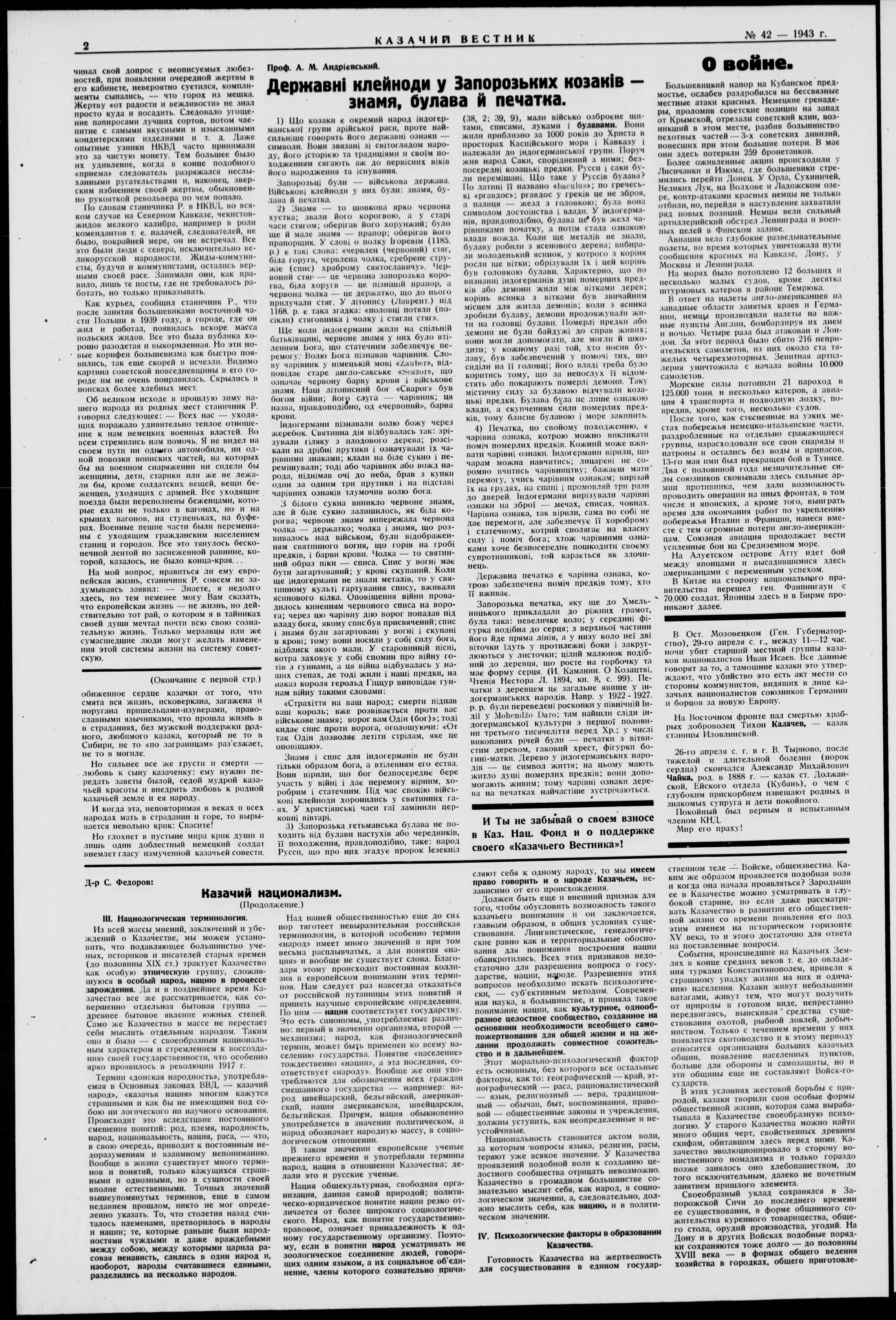 Kazachii vestnik = Kozácky věstník = Der Kosakenbote = Kozac'kyi visnyk