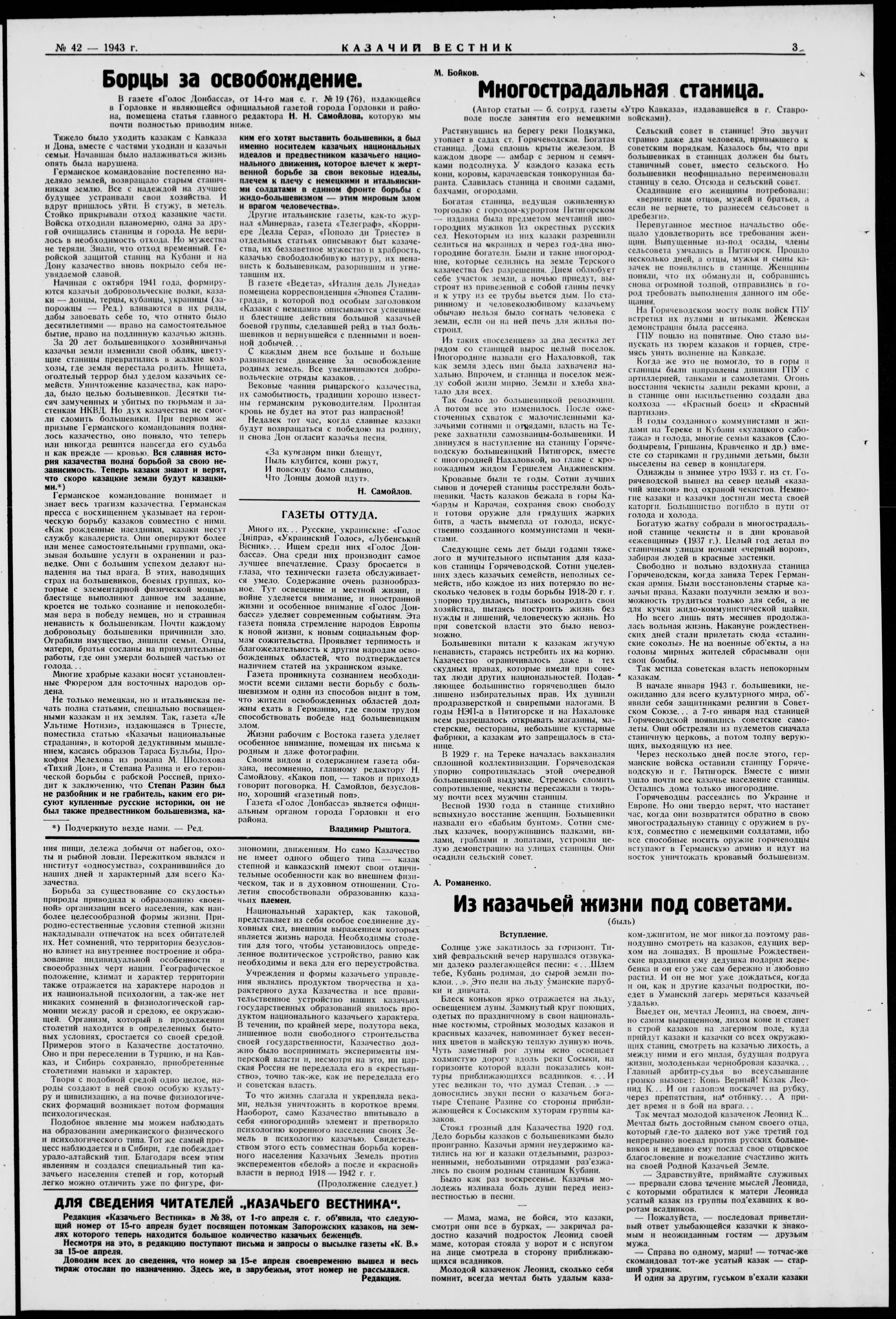 Kazachii vestnik = Kozácky věstník = Der Kosakenbote = Kozac'kyi visnyk