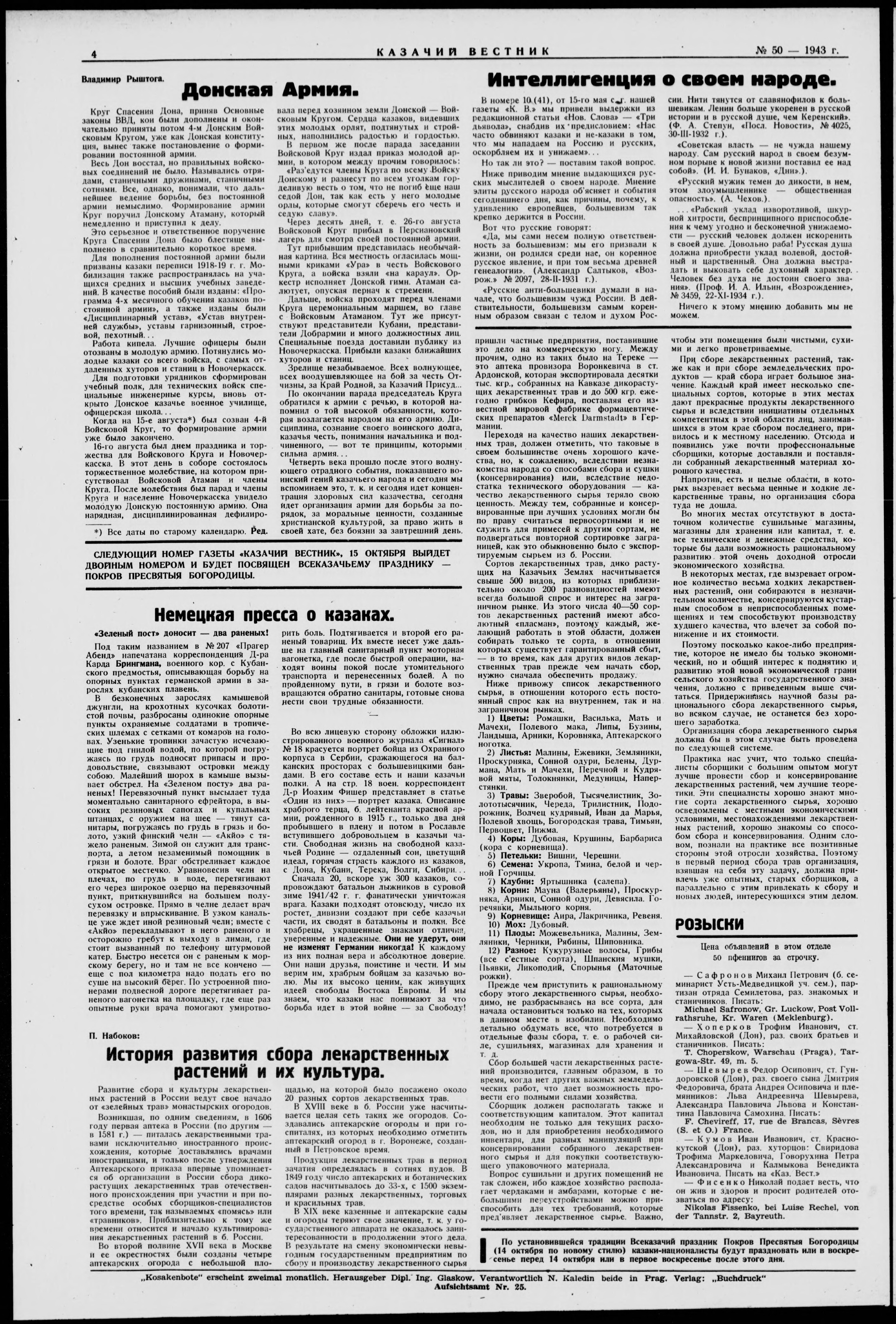 Kazachii vestnik = Kozácky věstník = Der Kosakenbote = Kozac'kyi visnyk